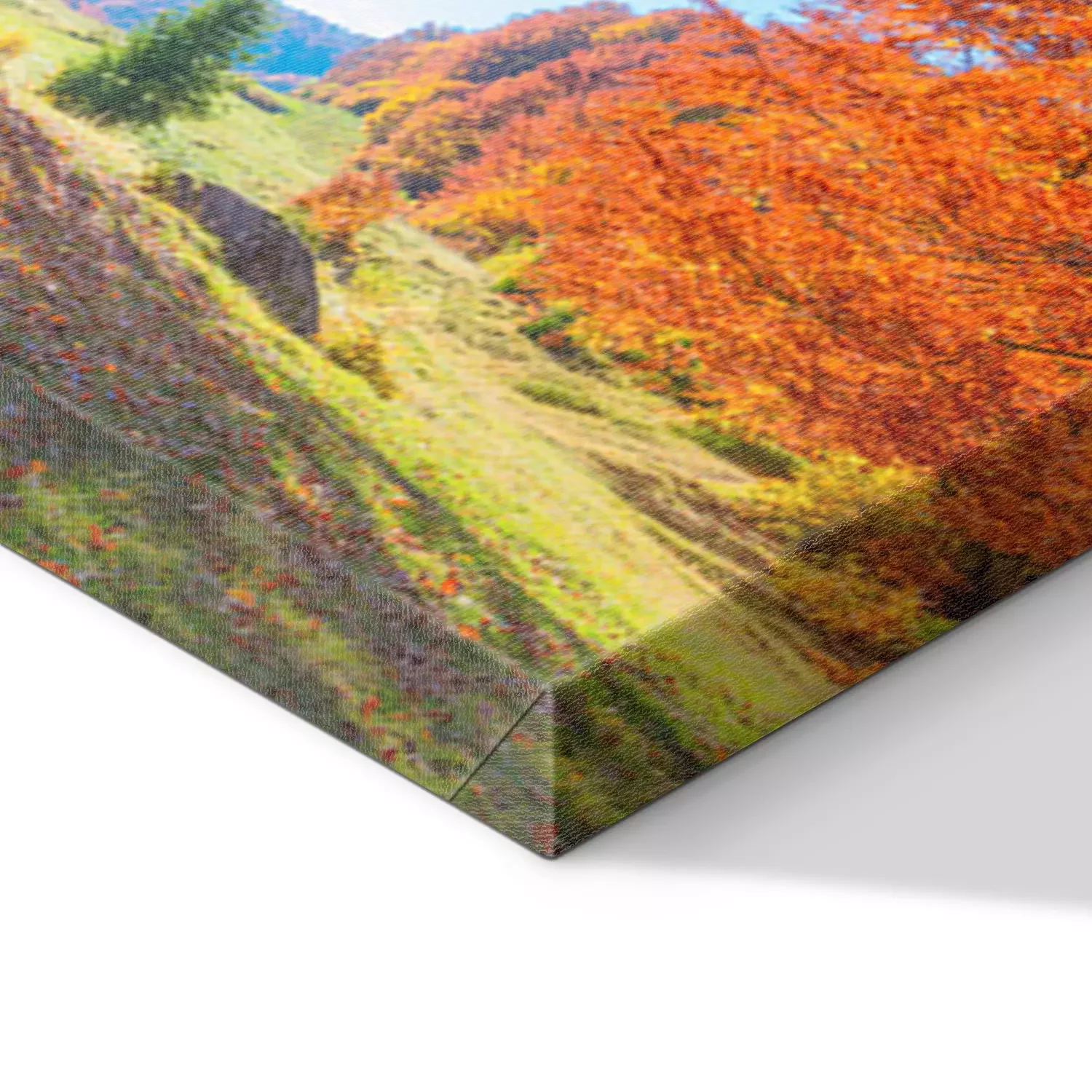 De print wordt aangebracht op hoogwaardig canvas dat op een schildersweefgetouw (spieraam) wordt gespannen. Omdat de print de zijranden bedekt, hoeft het ontwerp niet met een extra kader te worden omlijst. Wij raden ook composities aan die uit meerdere foto's bestaan en zo een coherente compositie vormen.
