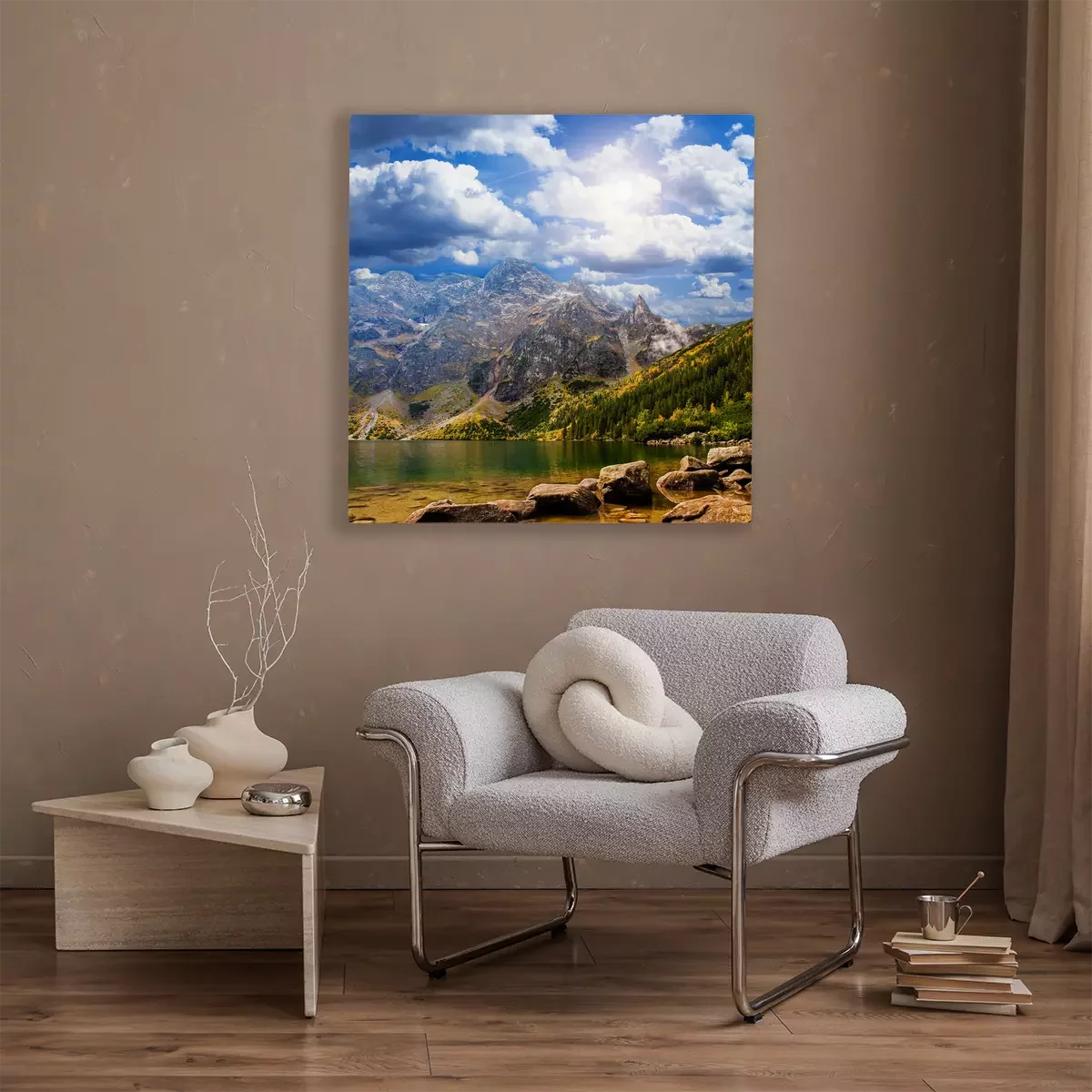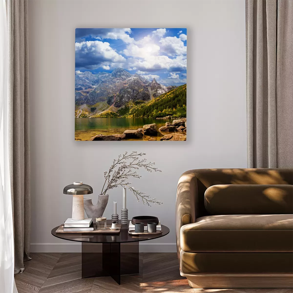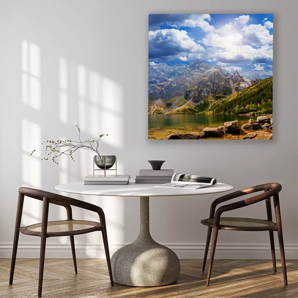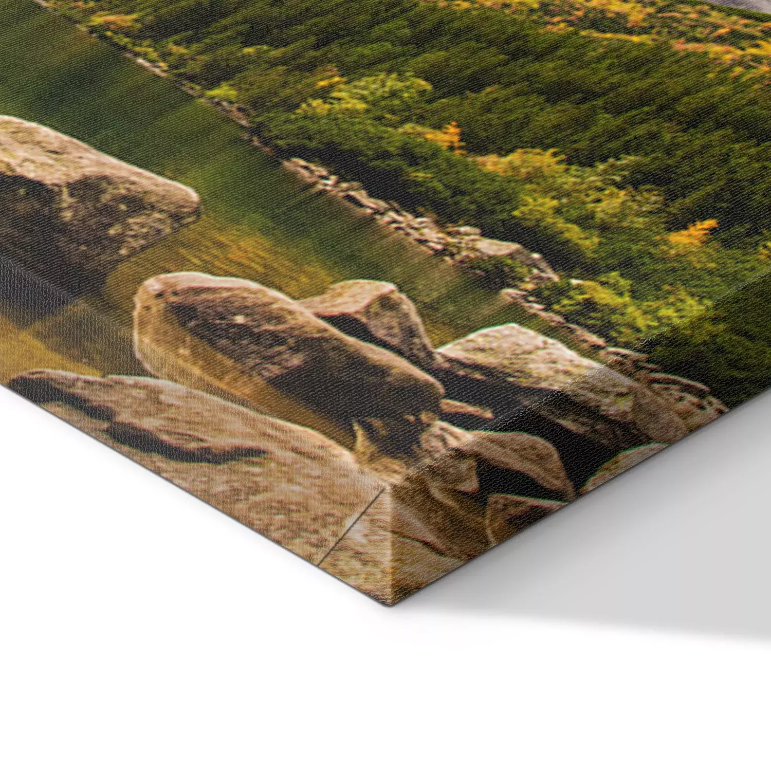 De print wordt aangebracht op hoogwaardig canvas dat op een schildersweefgetouw (spieraam) wordt gespannen. Omdat de print de zijranden bedekt, hoeft het ontwerp niet met een extra kader te worden omlijst. Wij raden ook composities aan die uit meerdere foto's bestaan en zo een coherente compositie vormen.