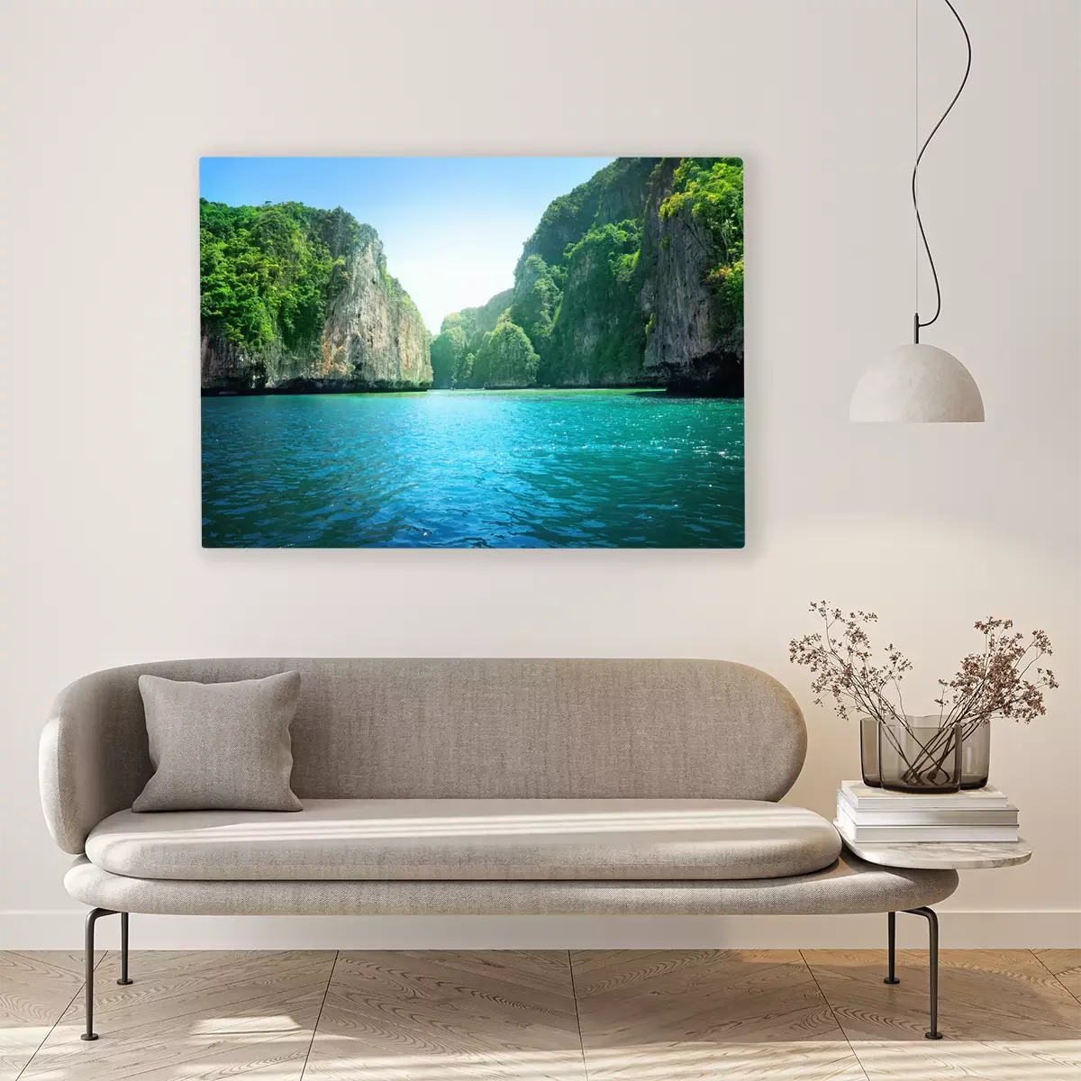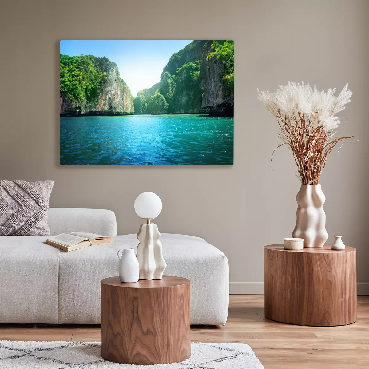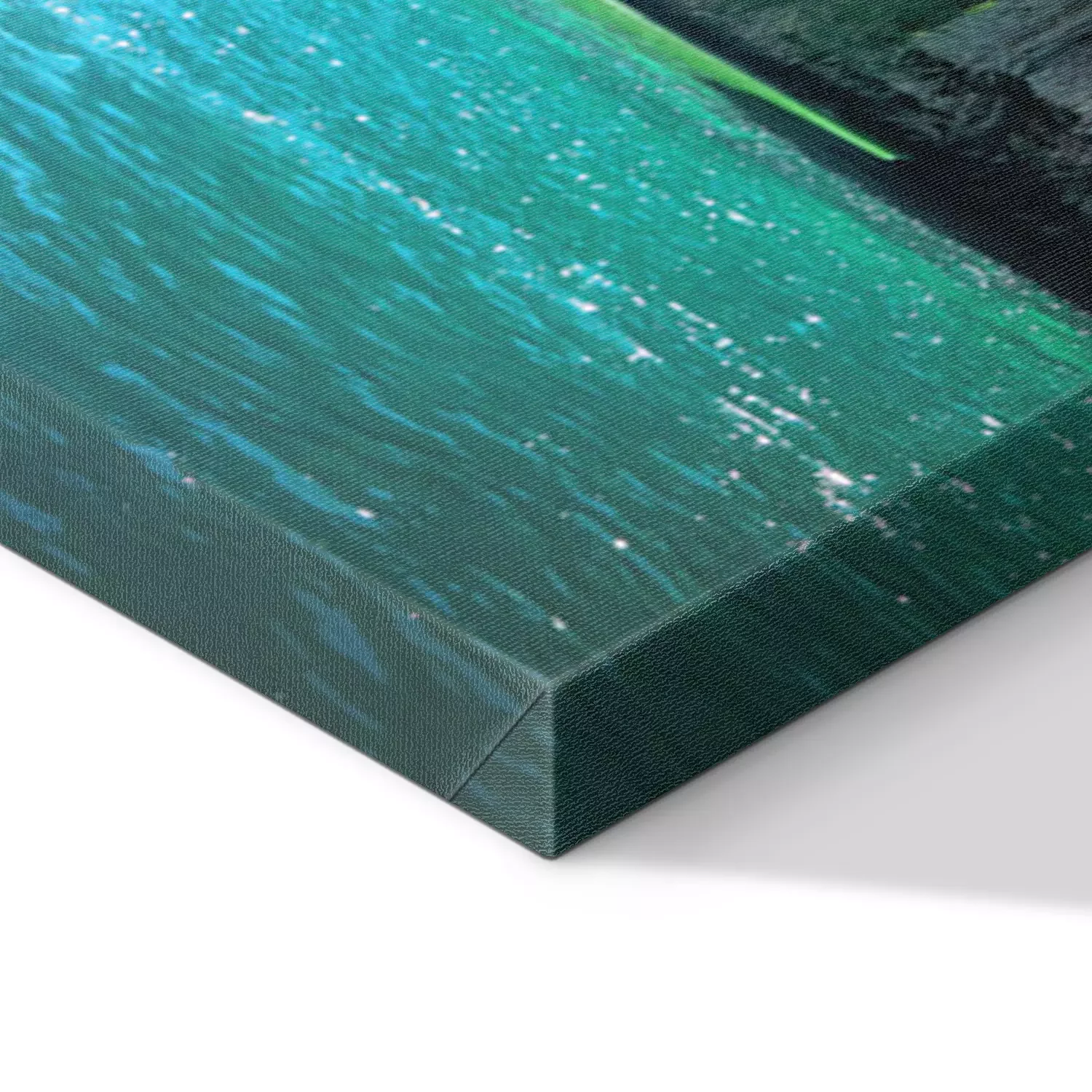 De print wordt aangebracht op hoogwaardig canvas dat op een schildersweefgetouw (spieraam) wordt gespannen. Omdat de print de zijranden bedekt, hoeft het ontwerp niet met een extra kader te worden omlijst. Wij raden ook composities aan die uit meerdere foto's bestaan en zo een coherente compositie vormen.