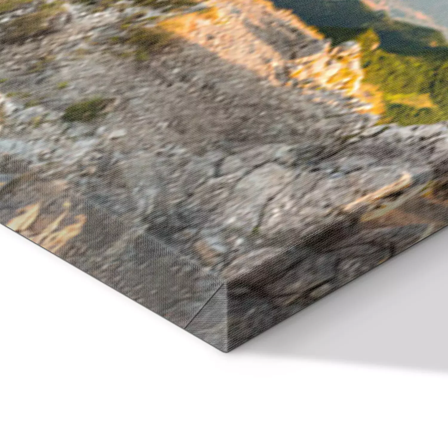 De print wordt aangebracht op hoogwaardig canvas dat op een schildersweefgetouw (spieraam) wordt gespannen. Omdat de print de zijranden bedekt, hoeft het ontwerp niet met een extra kader te worden omlijst. Wij raden ook composities aan die uit meerdere foto's bestaan en zo een coherente compositie vormen.