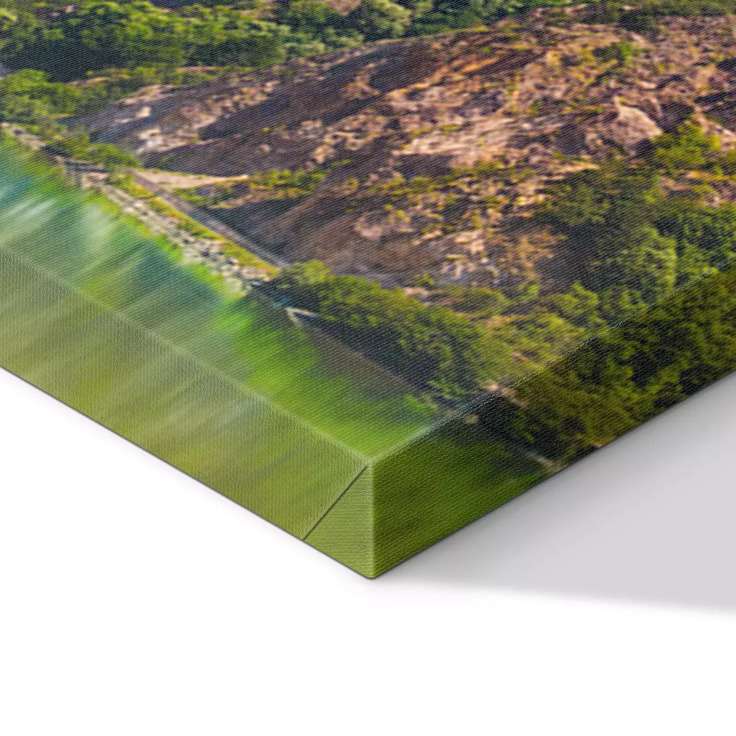 De print wordt aangebracht op hoogwaardig canvas dat op een schildersweefgetouw (spieraam) wordt gespannen. Omdat de print de zijranden bedekt, hoeft het ontwerp niet met een extra kader te worden omlijst. Wij raden ook composities aan die uit meerdere foto's bestaan en zo een coherente compositie vormen.
