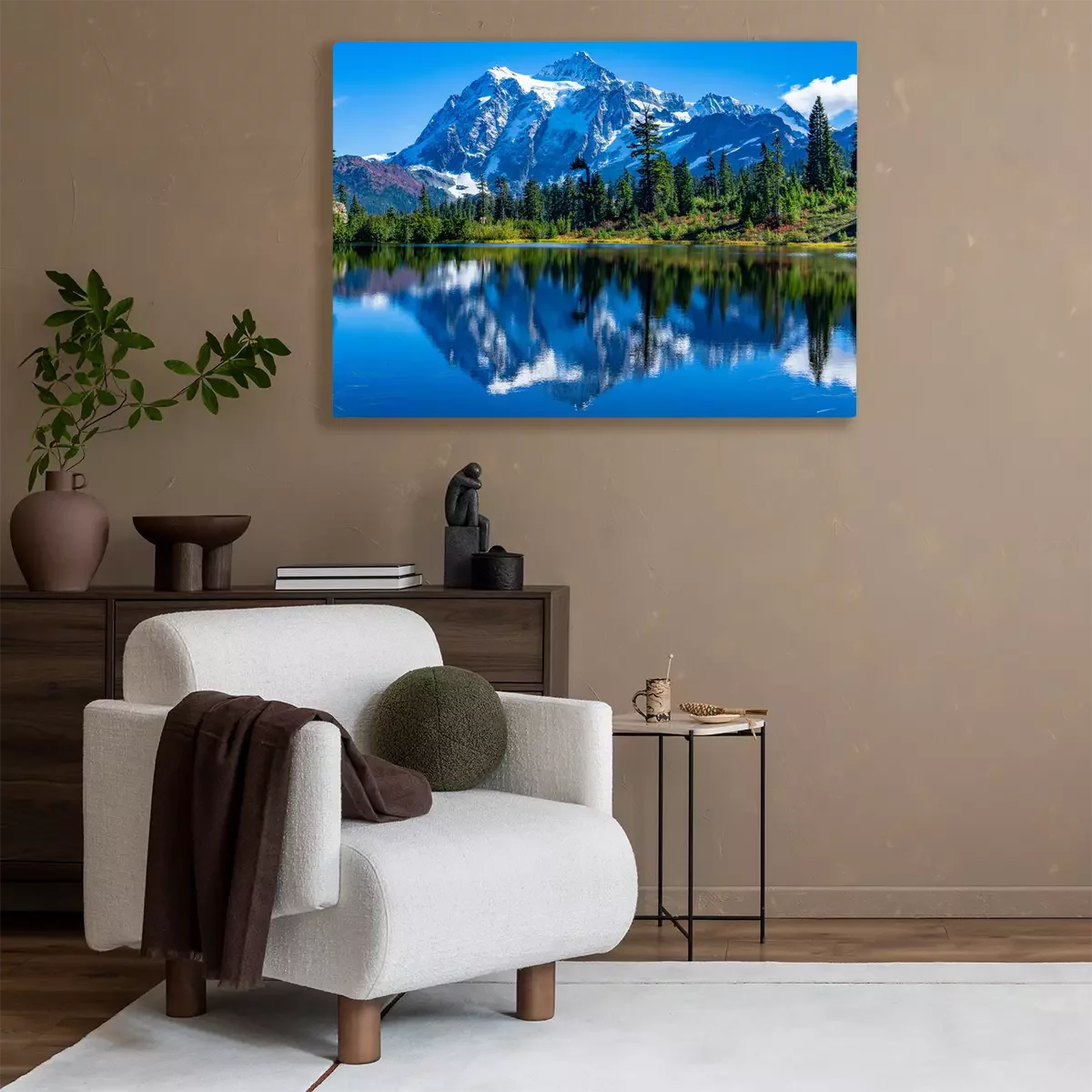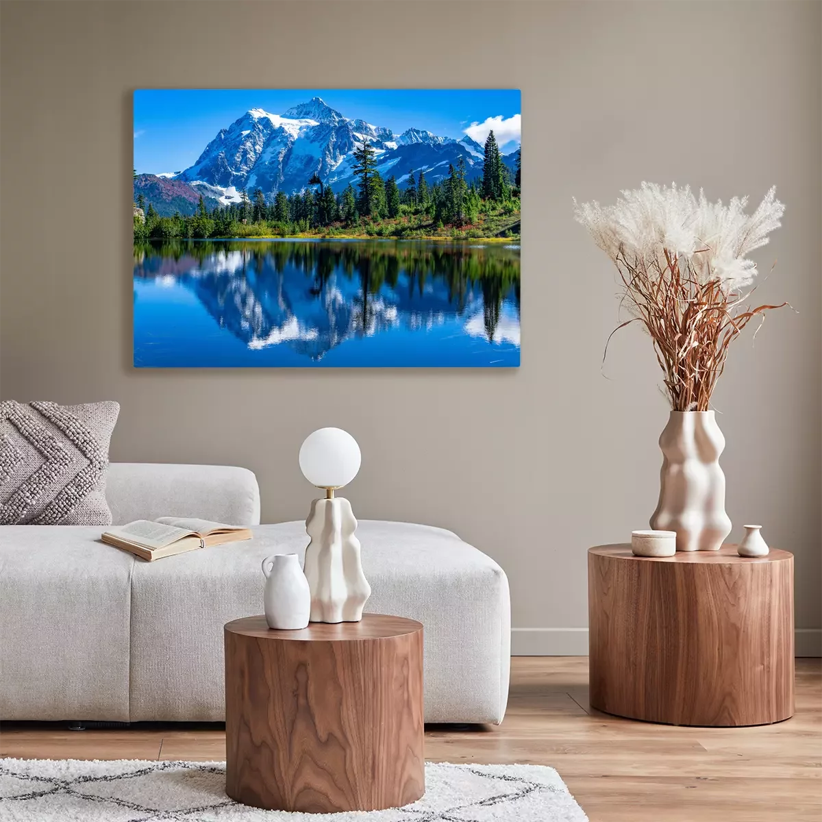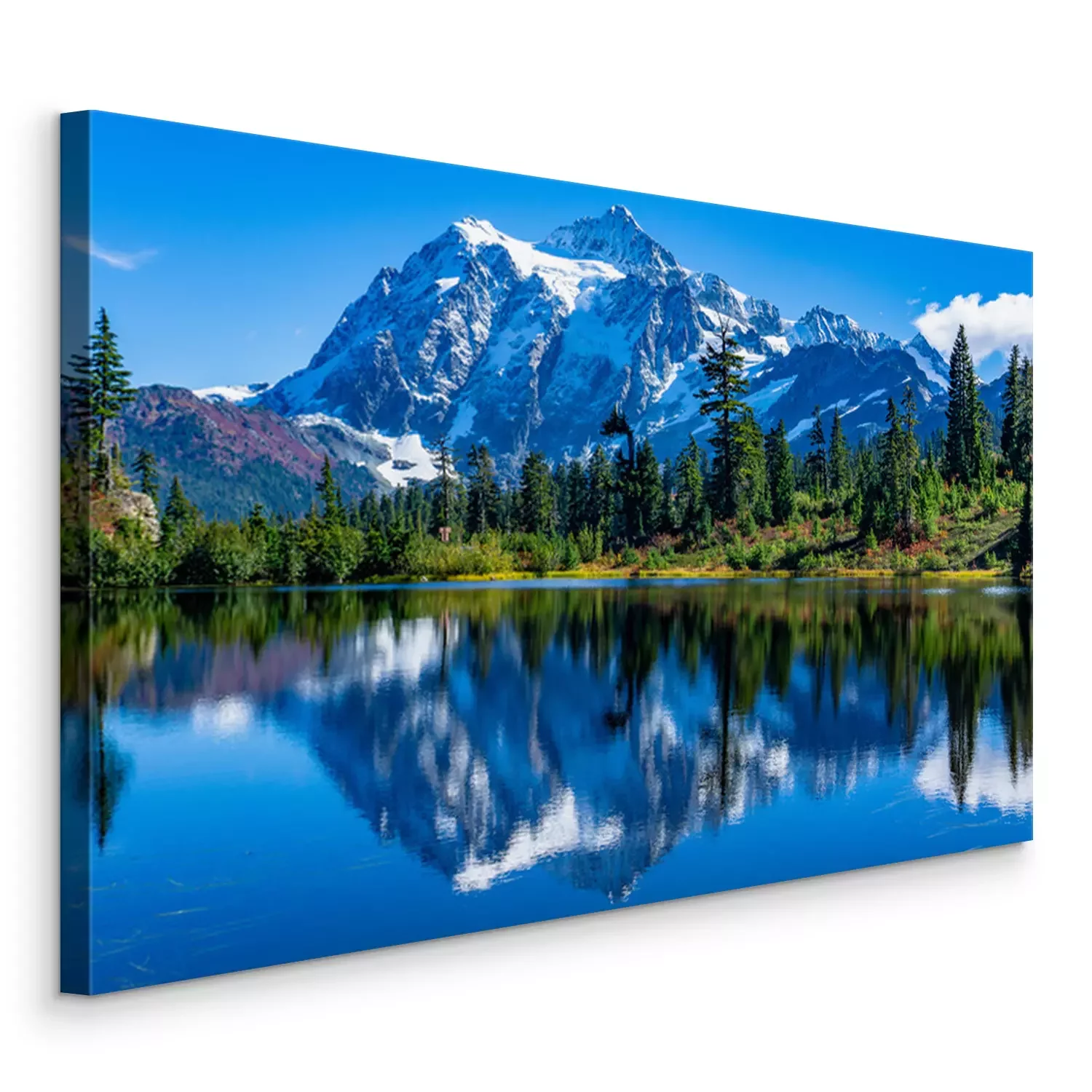 Canvas: Landschap met een meer en uitzicht op de bergen