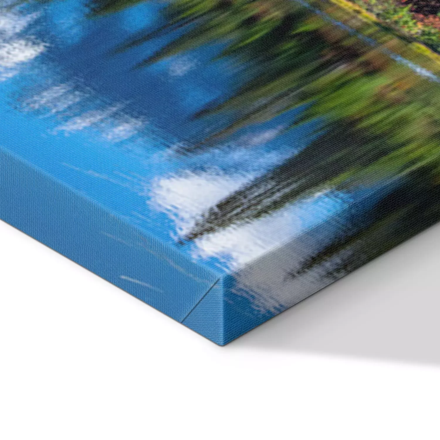De print wordt aangebracht op hoogwaardig canvas dat op een schildersweefgetouw (spieraam) wordt gespannen. Omdat de print de zijranden bedekt, hoeft het ontwerp niet met een extra kader te worden omlijst. Wij raden ook composities aan die uit meerdere foto's bestaan en zo een coherente compositie vormen.