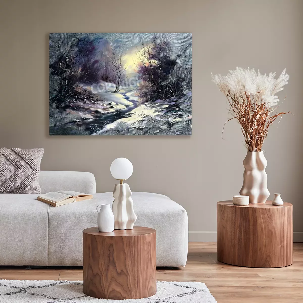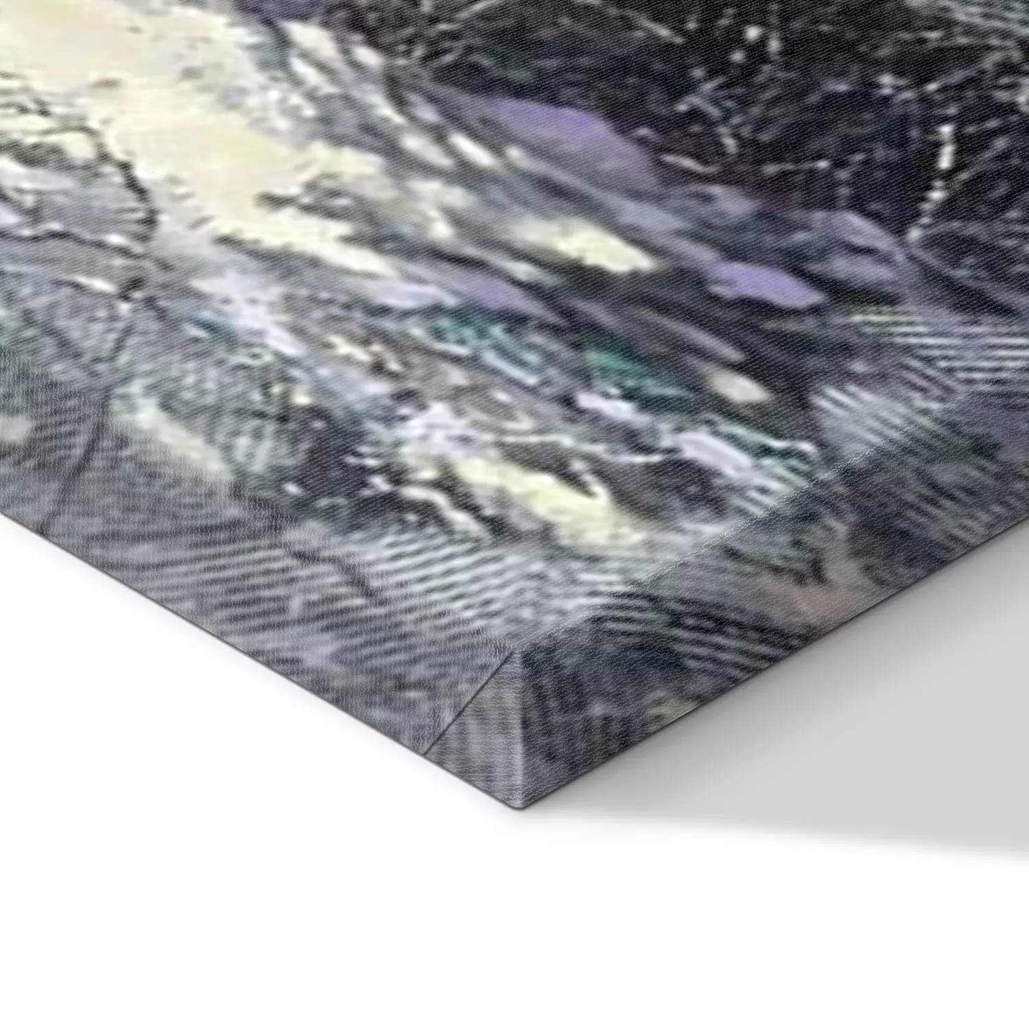 De print wordt aangebracht op hoogwaardig canvas dat op een schildersweefgetouw (spieraam) wordt gespannen. Omdat de print de zijranden bedekt, hoeft het ontwerp niet met een extra kader te worden omlijst. Wij raden ook composities aan die uit meerdere foto's bestaan en zo een coherente compositie vormen.