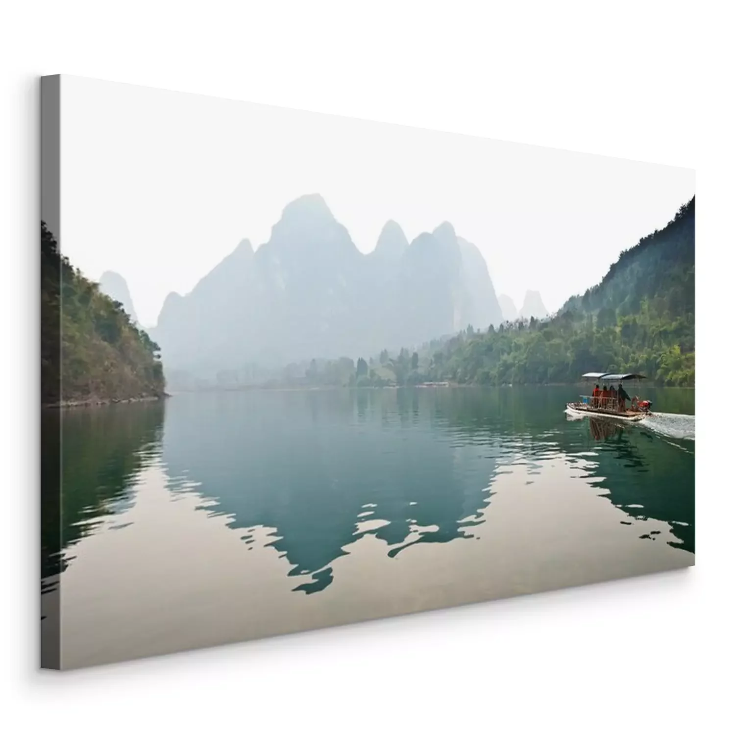 Canvas Landschap van de Li-rivier in de winter, Guilin, China
