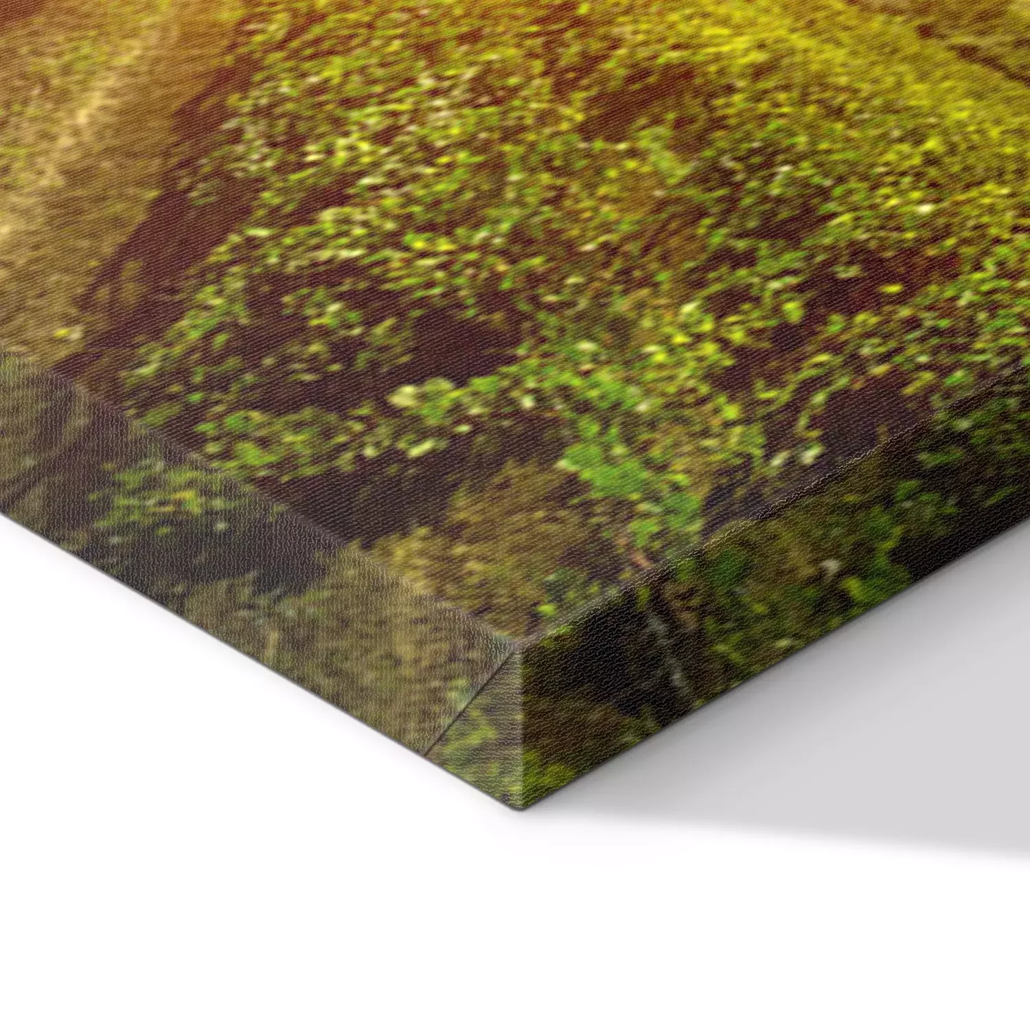 De print wordt aangebracht op hoogwaardig canvas dat op een schildersweefgetouw (spieraam) wordt gespannen. Omdat de print de zijranden bedekt, hoeft het ontwerp niet met een extra kader te worden omlijst. Wij raden ook composities aan die uit meerdere foto's bestaan en zo een coherente compositie vormen.