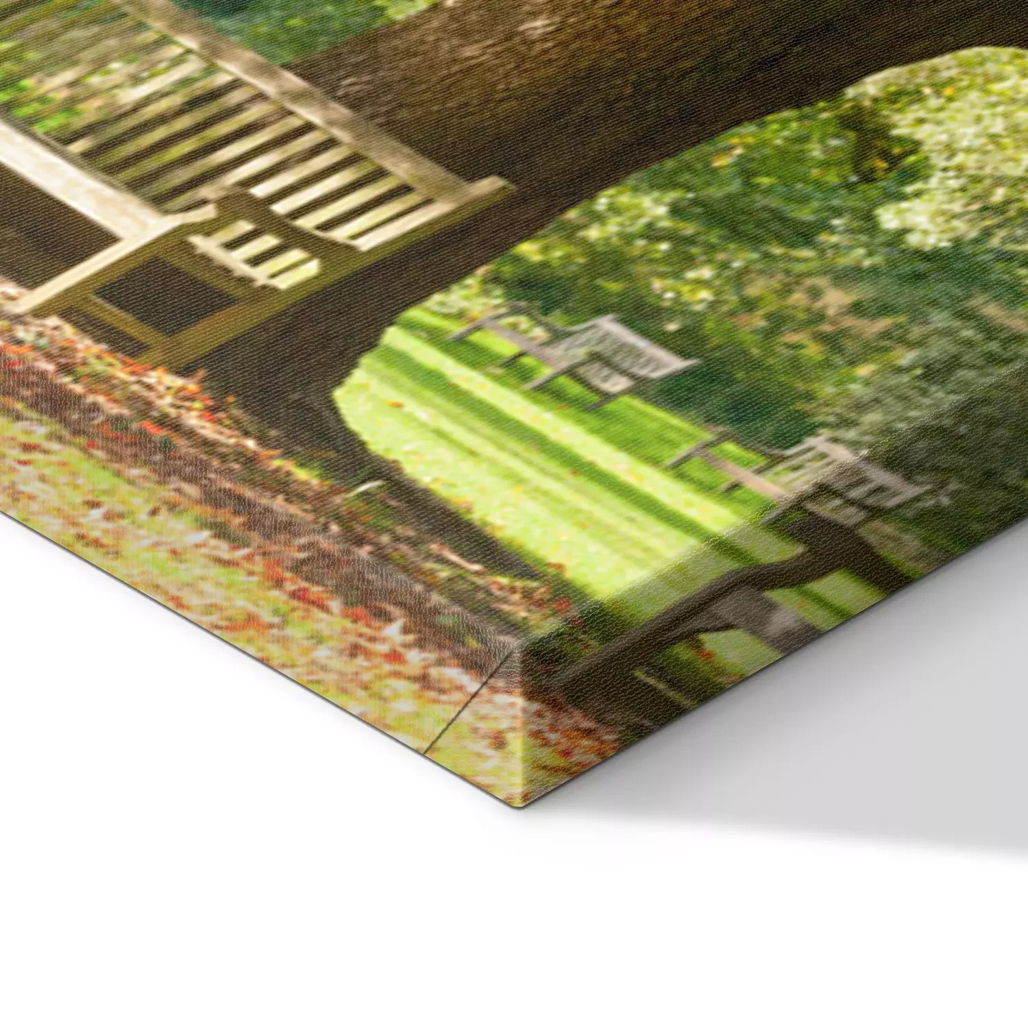 De print wordt aangebracht op hoogwaardig canvas dat op een schildersweefgetouw (spieraam) wordt gespannen. Omdat de print de zijranden bedekt, hoeft het ontwerp niet met een extra kader te worden omlijst. Wij raden ook composities aan die uit meerdere foto's bestaan en zo een coherente compositie vormen.