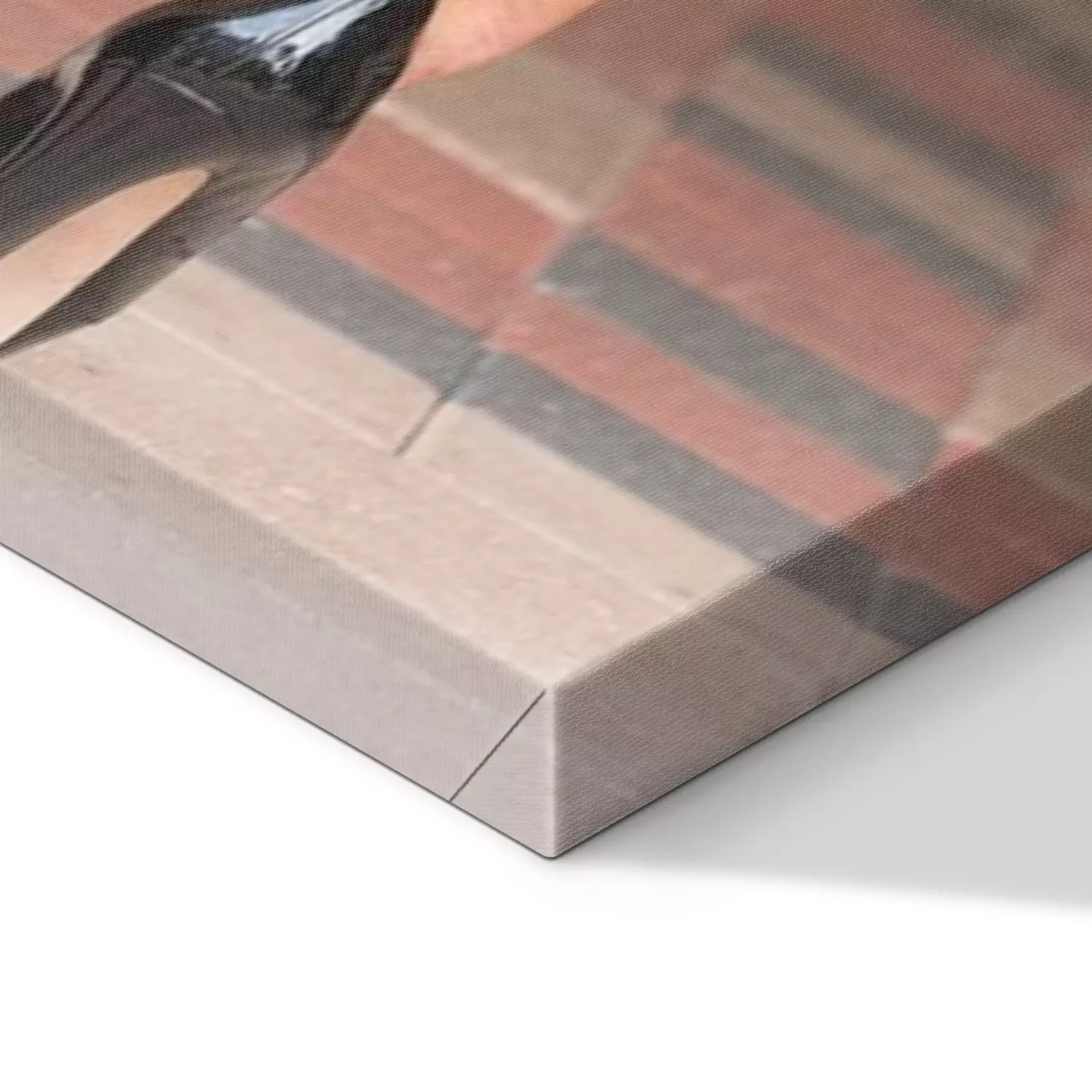 De print wordt aangebracht op hoogwaardig canvas dat op een schildersweefgetouw (spieraam) wordt gespannen. Omdat de print de zijranden bedekt, hoeft het ontwerp niet met een extra kader te worden omlijst. Wij raden ook composities aan die uit meerdere foto's bestaan en zo een coherente compositie vormen.