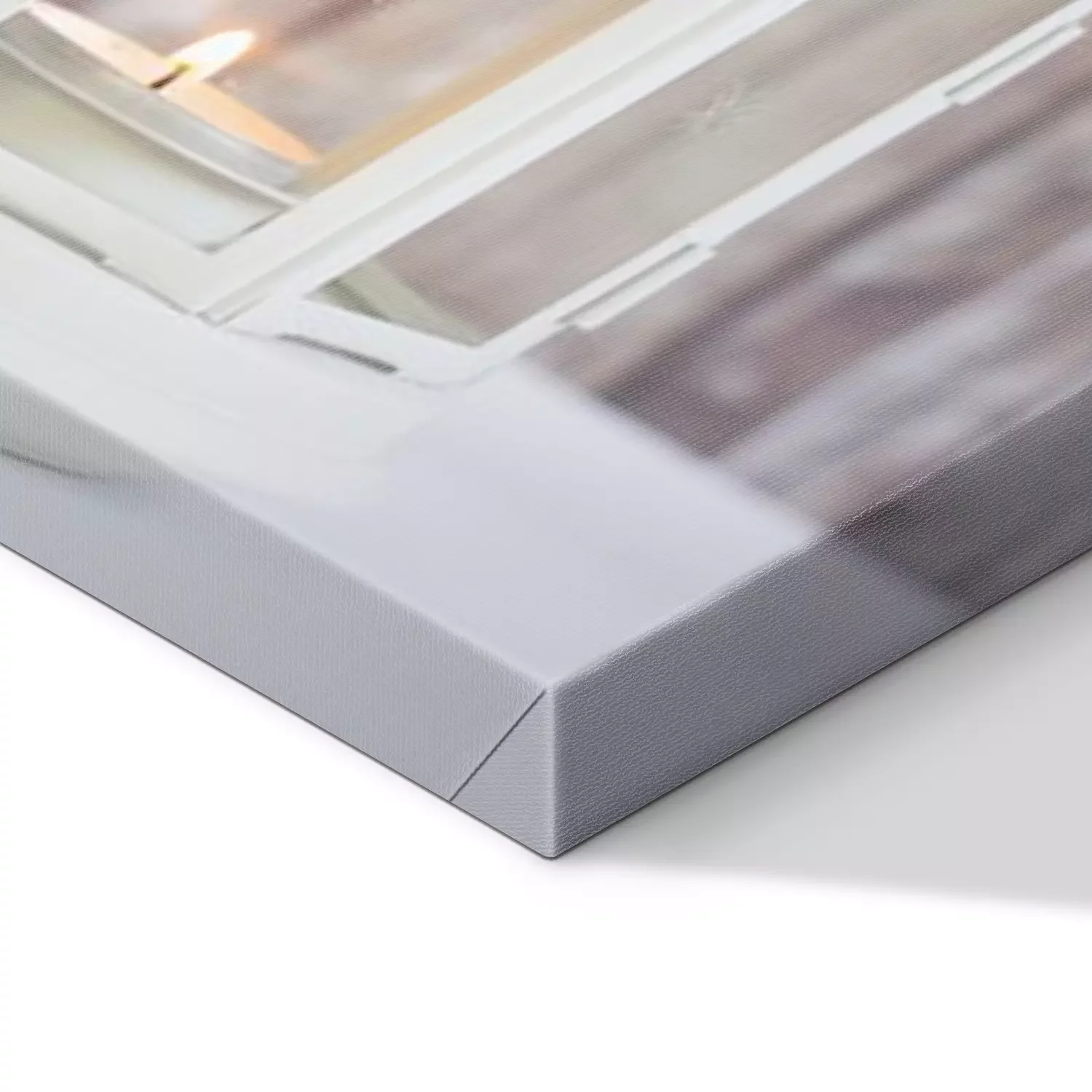 De print wordt aangebracht op hoogwaardig canvas dat op een schildersweefgetouw (spieraam) wordt gespannen. Omdat de print de zijranden bedekt, hoeft het ontwerp niet met een extra kader te worden omlijst. Wij raden ook composities aan die uit meerdere foto's bestaan en zo een coherente compositie vormen.