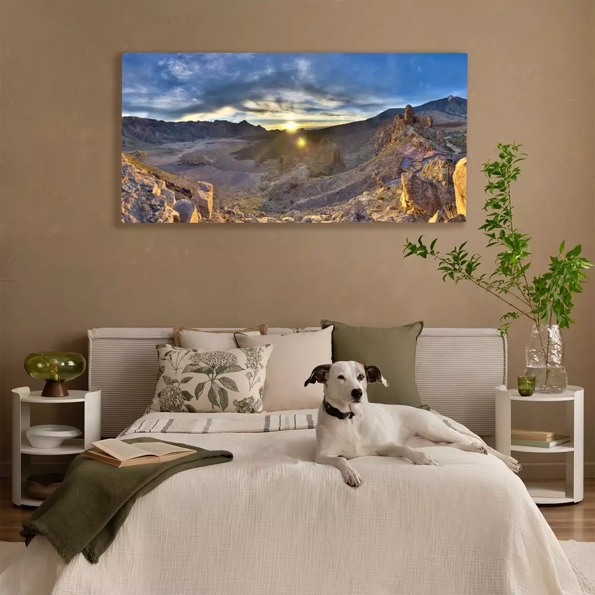 De print wordt aangebracht op hoogwaardig canvas dat op een schildersweefgetouw (spieraam) wordt gespannen. Omdat de print de zijranden bedekt, hoeft het ontwerp niet met een extra kader te worden omlijst. Wij raden ook composities aan die uit meerdere foto's bestaan en zo een coherente compositie vormen.