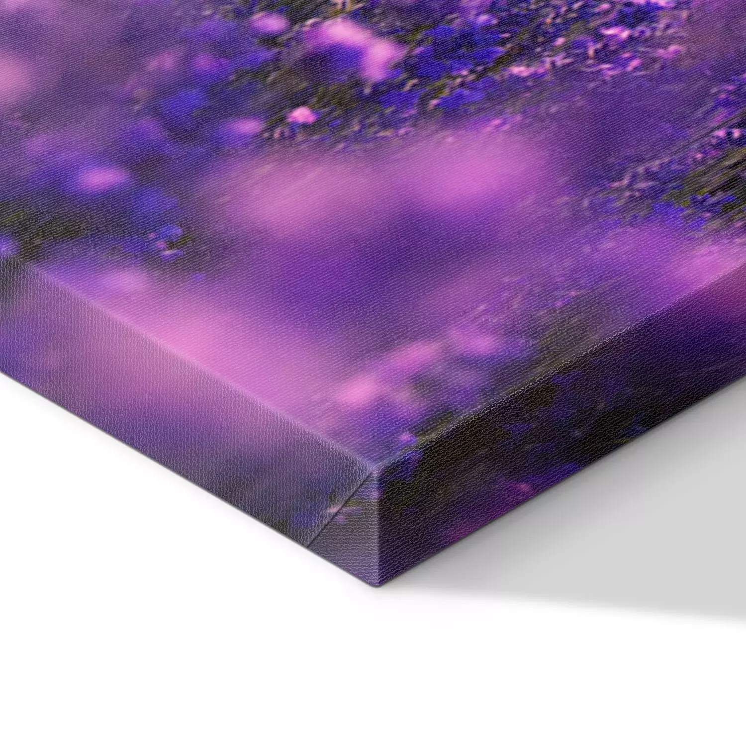 De print wordt aangebracht op hoogwaardig canvas dat op een schildersweefgetouw (spieraam) wordt gespannen. Omdat de print de zijranden bedekt, hoeft het ontwerp niet met een extra kader te worden omlijst. Wij raden ook composities aan die uit meerdere foto's bestaan en zo een coherente compositie vormen.