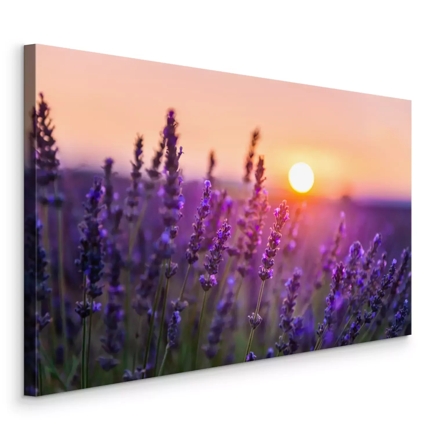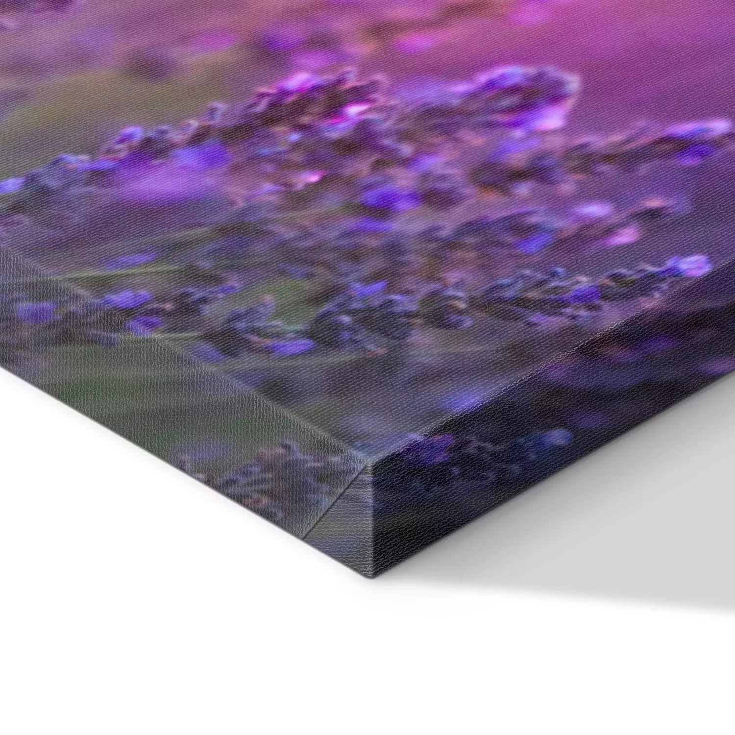 Canvas: Lavender flowers at sunset in Provence, France. Macro image, shallow depth of field