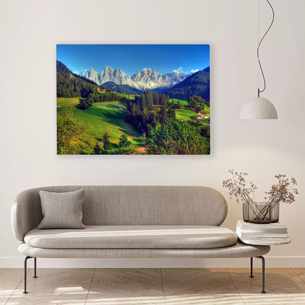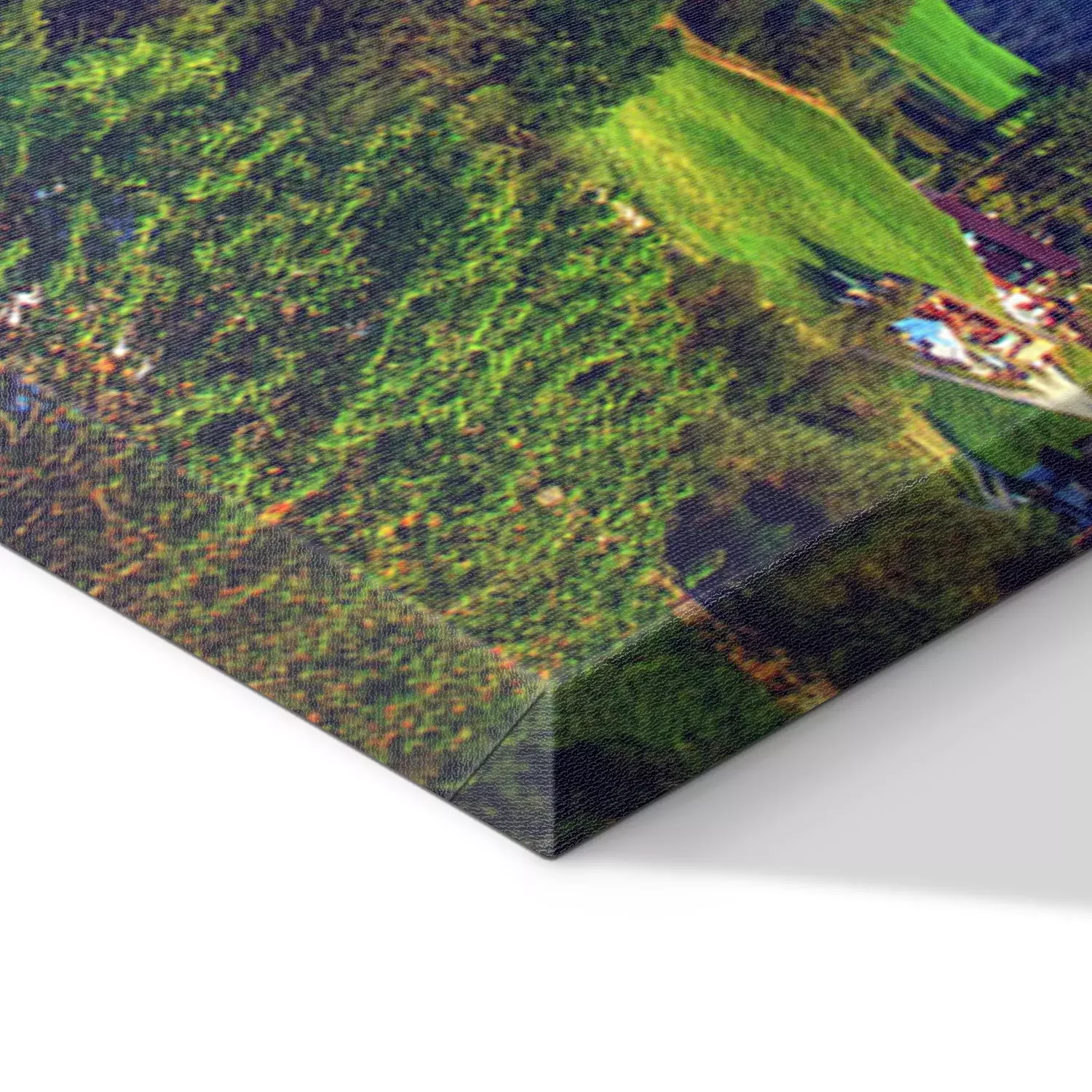 De print wordt aangebracht op hoogwaardig canvas dat op een schildersweefgetouw (spieraam) wordt gespannen. Omdat de print de zijranden bedekt, hoeft het ontwerp niet met een extra kader te worden omlijst. Wij raden ook composities aan die uit meerdere foto's bestaan en zo een coherente compositie vormen.