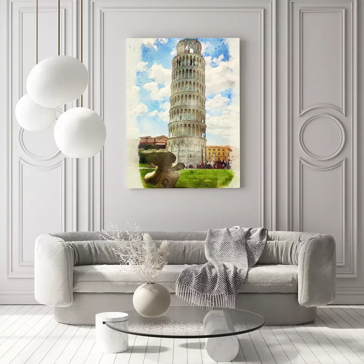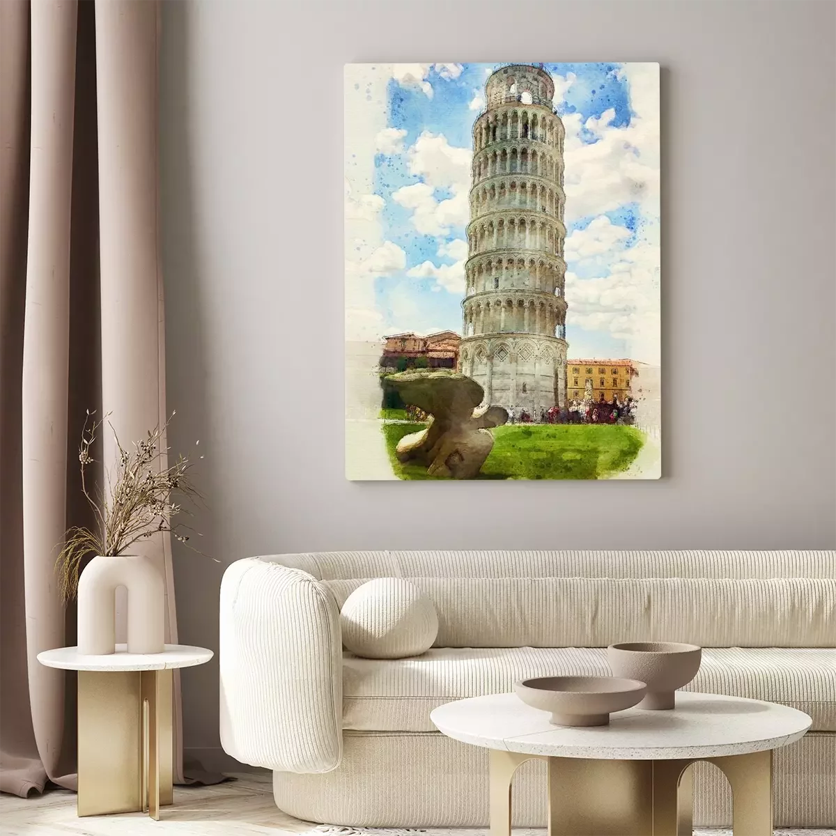 Canvas  Leaning Tower of Pisa, Italy. Watercolor painting