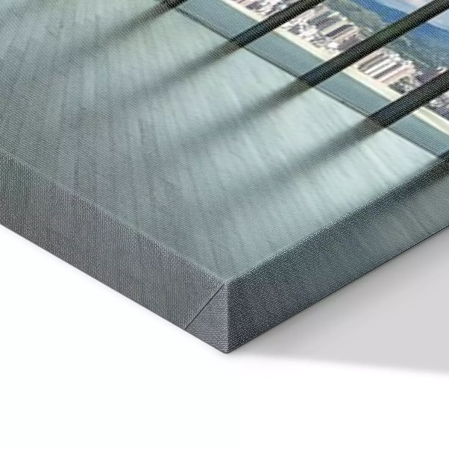 De print wordt aangebracht op hoogwaardig canvas dat op een schildersweefgetouw (spieraam) wordt gespannen. Omdat de print de zijranden bedekt, hoeft het ontwerp niet met een extra kader te worden omlijst. Wij raden ook composities aan die uit meerdere foto's bestaan en zo een coherente compositie vormen.