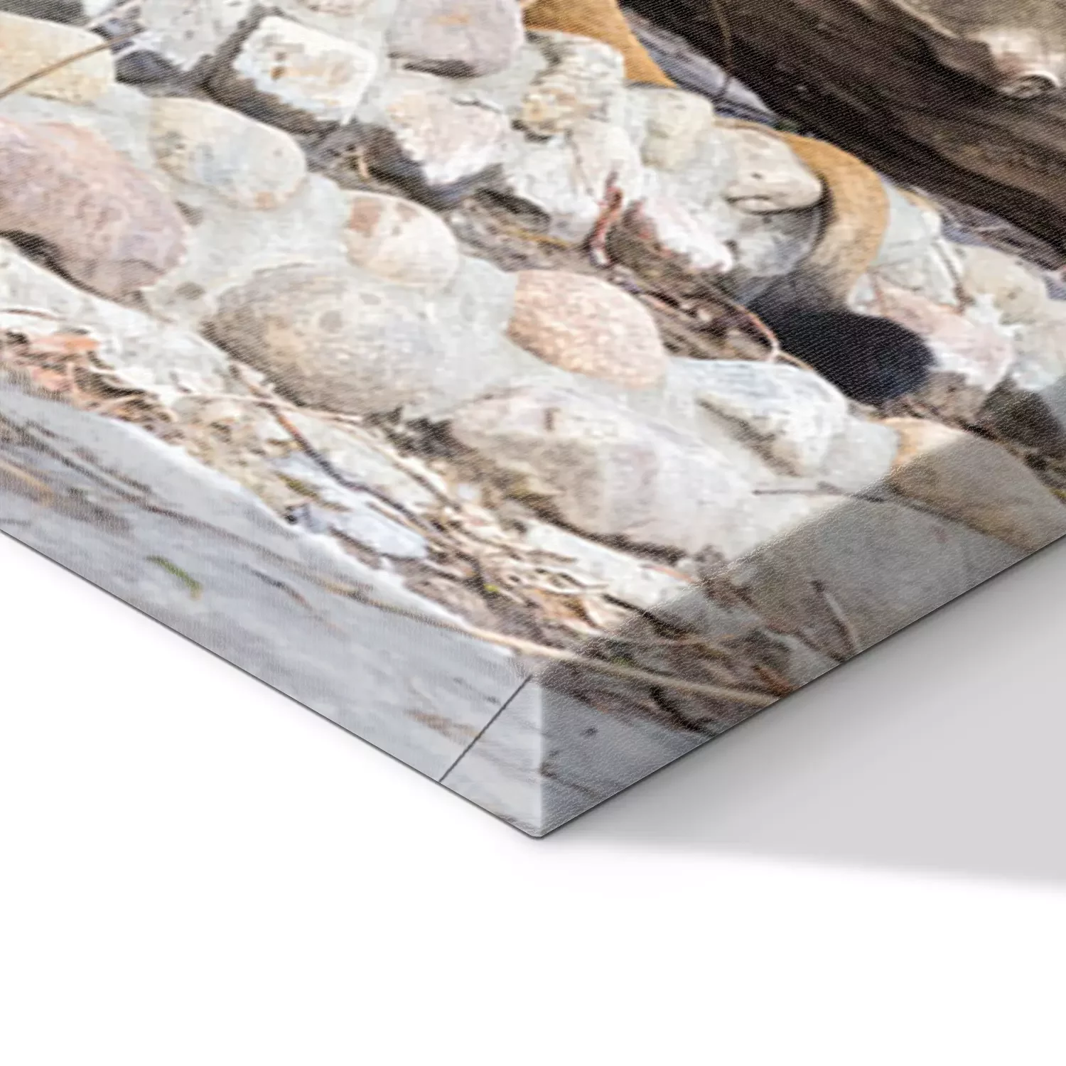 De print wordt aangebracht op hoogwaardig canvas dat op een schildersweefgetouw (spieraam) wordt gespannen. Omdat de print de zijranden bedekt, hoeft het ontwerp niet met een extra kader te worden omlijst. Wij raden ook composities aan die uit meerdere foto's bestaan en zo een coherente compositie vormen.