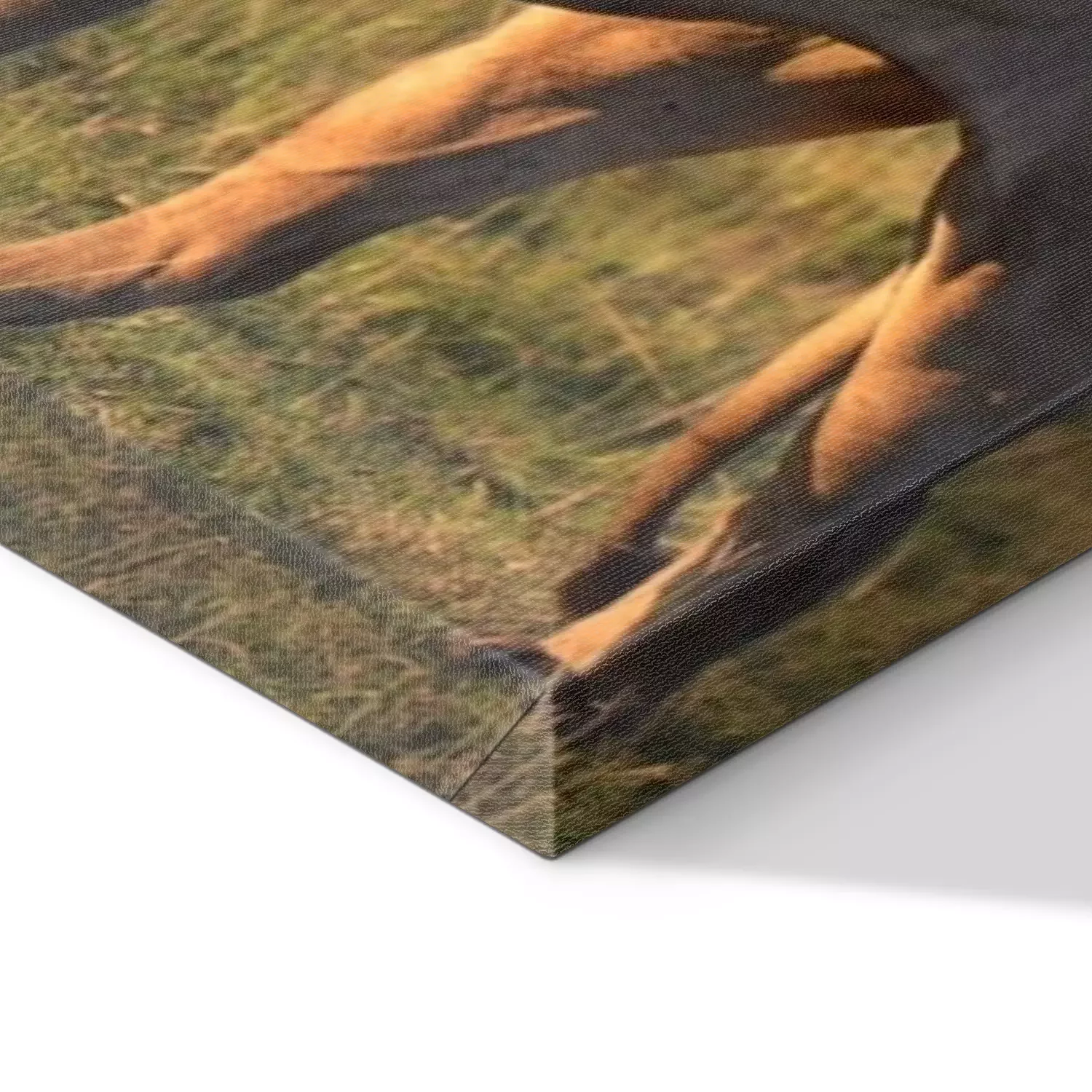 De print wordt aangebracht op hoogwaardig canvas dat op een schildersweefgetouw (spieraam) wordt gespannen. Omdat de print de zijranden bedekt, hoeft het ontwerp niet met een extra kader te worden omlijst. Wij raden ook composities aan die uit meerdere foto's bestaan en zo een coherente compositie vormen.