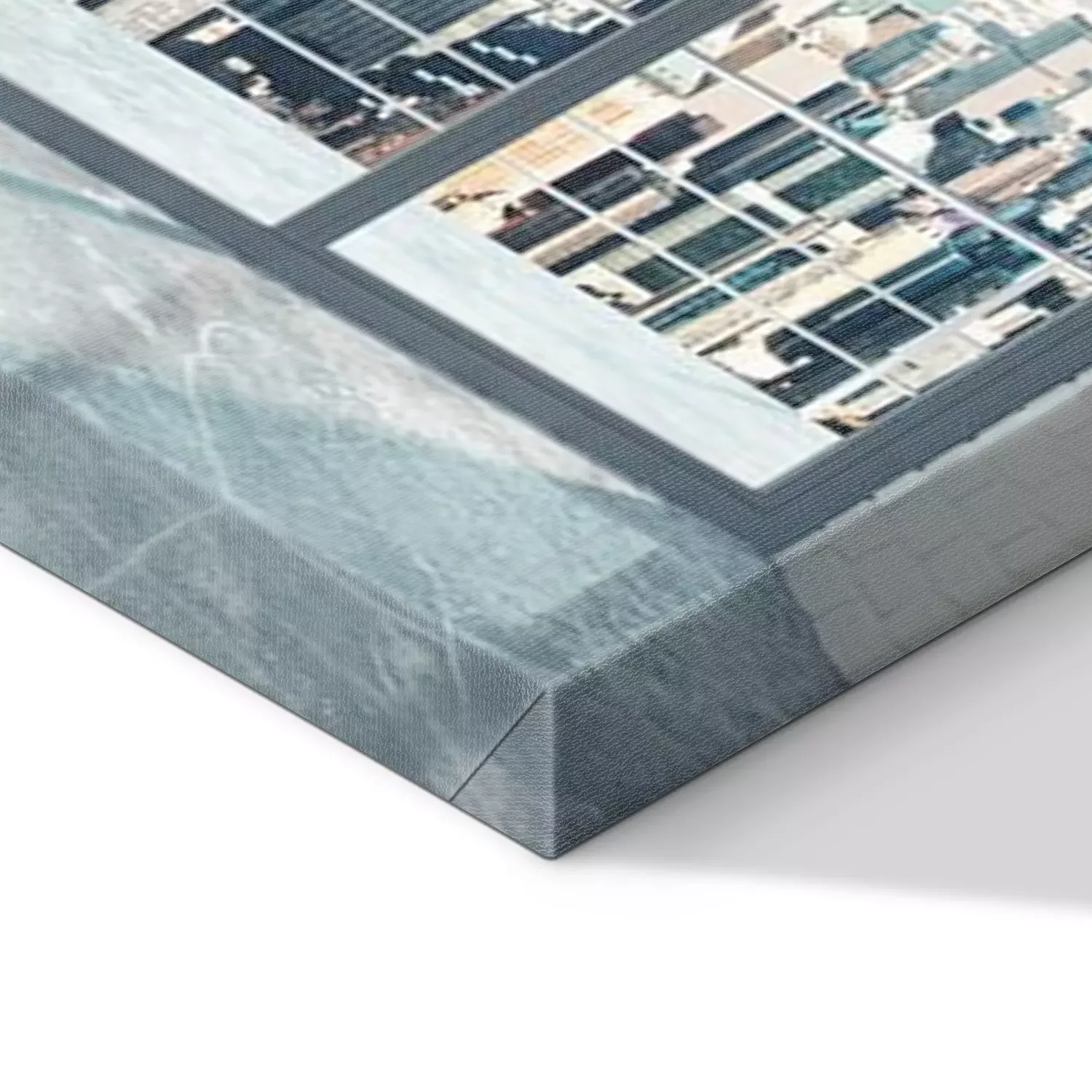 De print wordt aangebracht op hoogwaardig canvas dat op een schildersweefgetouw (spieraam) wordt gespannen. Omdat de print de zijranden bedekt, hoeft het ontwerp niet met een extra kader te worden omlijst. Wij raden ook composities aan die uit meerdere foto's bestaan en zo een coherente compositie vormen.
