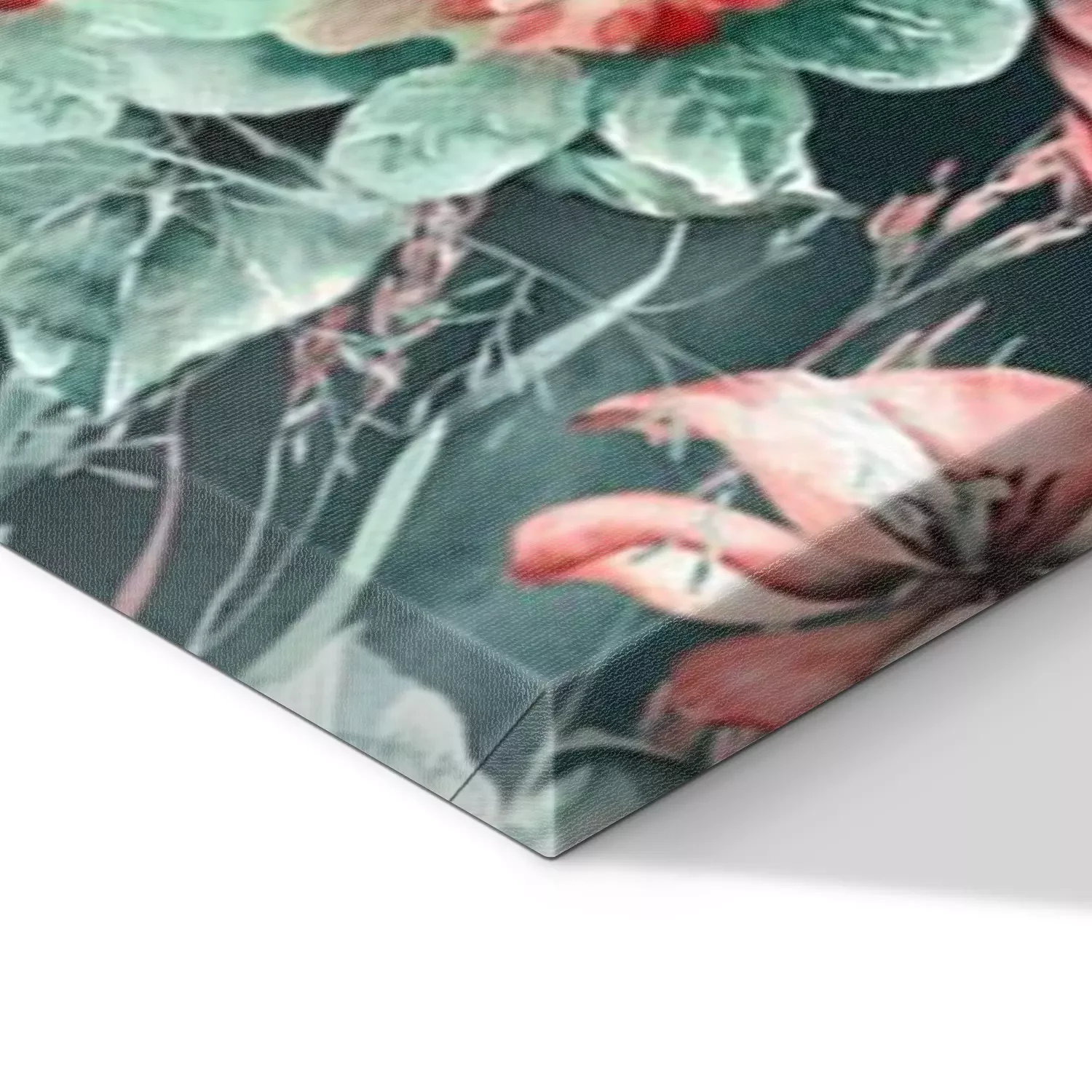 De print wordt aangebracht op hoogwaardig canvas dat op een schildersweefgetouw (spieraam) wordt gespannen. Omdat de print de zijranden bedekt, hoeft het ontwerp niet met een extra kader te worden omlijst. Wij raden ook composities aan die uit meerdere foto's bestaan en zo een coherente compositie vormen.