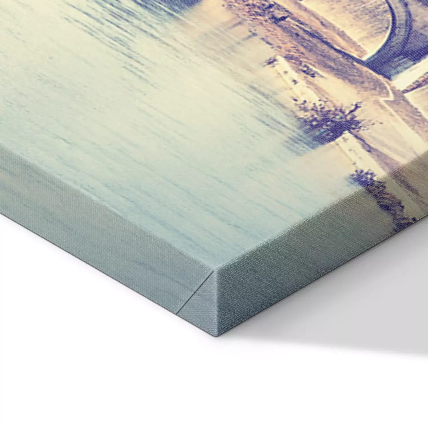 De print wordt aangebracht op hoogwaardig canvas dat op een schildersweefgetouw (spieraam) wordt gespannen. Omdat de print de zijranden bedekt, hoeft het ontwerp niet met een extra kader te worden omlijst. Wij raden ook composities aan die uit meerdere foto's bestaan en zo een coherente compositie vormen.
