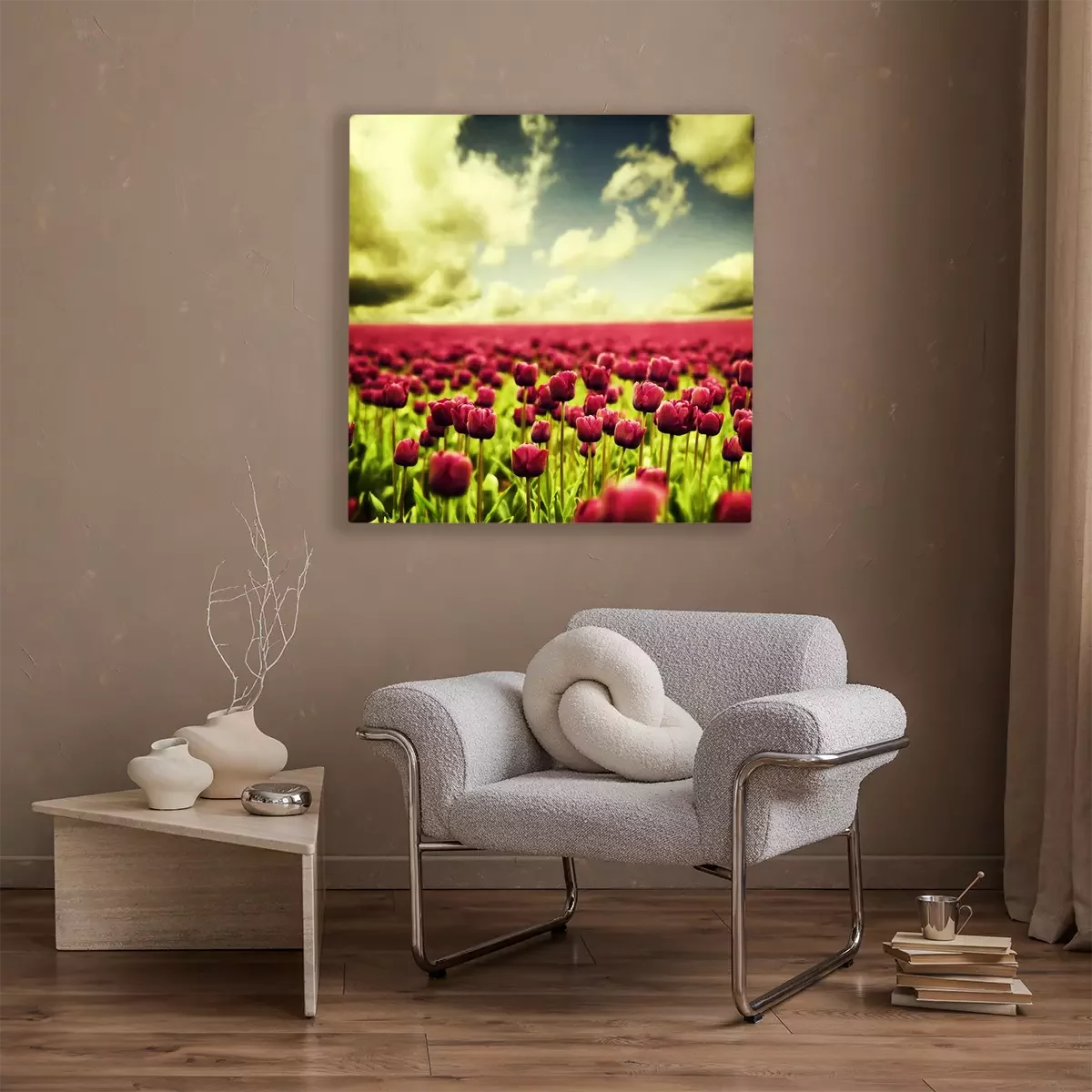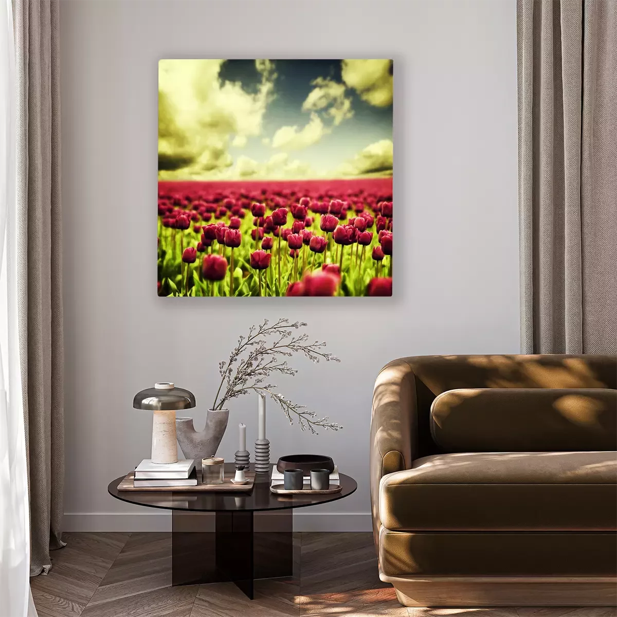 De print wordt aangebracht op hoogwaardig canvas dat op een schildersweefgetouw (spieraam) wordt gespannen. Omdat de print de zijranden bedekt, hoeft het ontwerp niet met een extra kader te worden omlijst. Wij raden ook composities aan die uit meerdere foto's bestaan en zo een coherente compositie vormen.