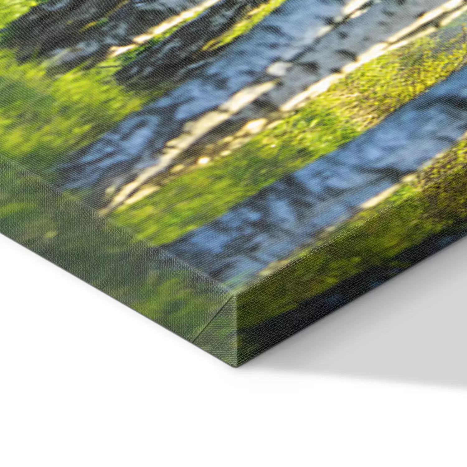 De print wordt aangebracht op hoogwaardig canvas dat op een schildersweefgetouw (spieraam) wordt gespannen. Omdat de print de zijranden bedekt, hoeft het ontwerp niet met een extra kader te worden omlijst. Wij raden ook composities aan die uit meerdere foto's bestaan en zo een coherente compositie vormen.