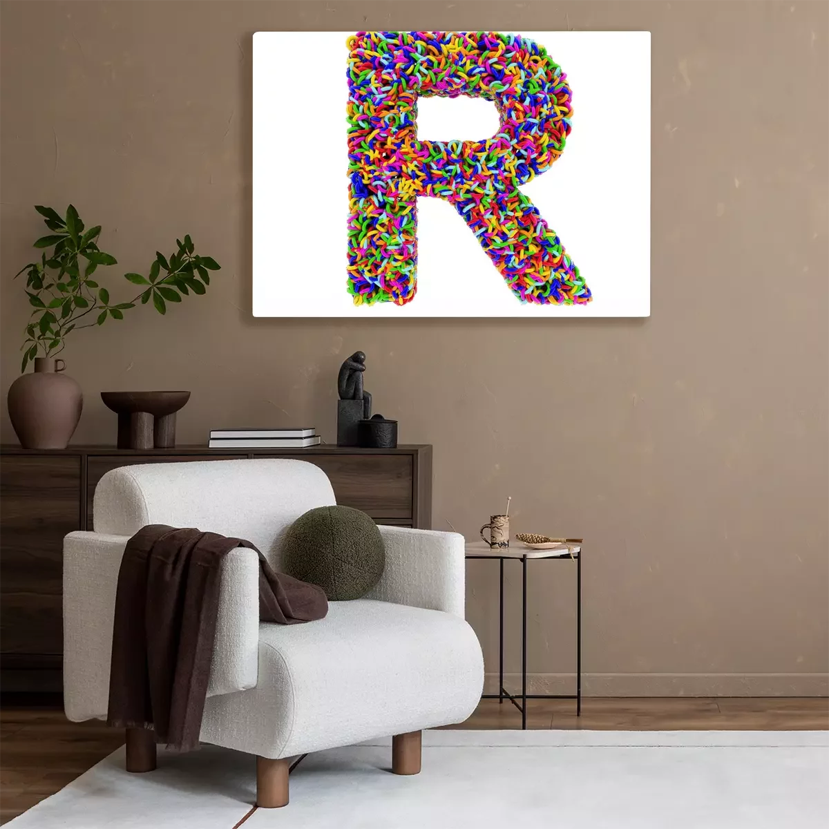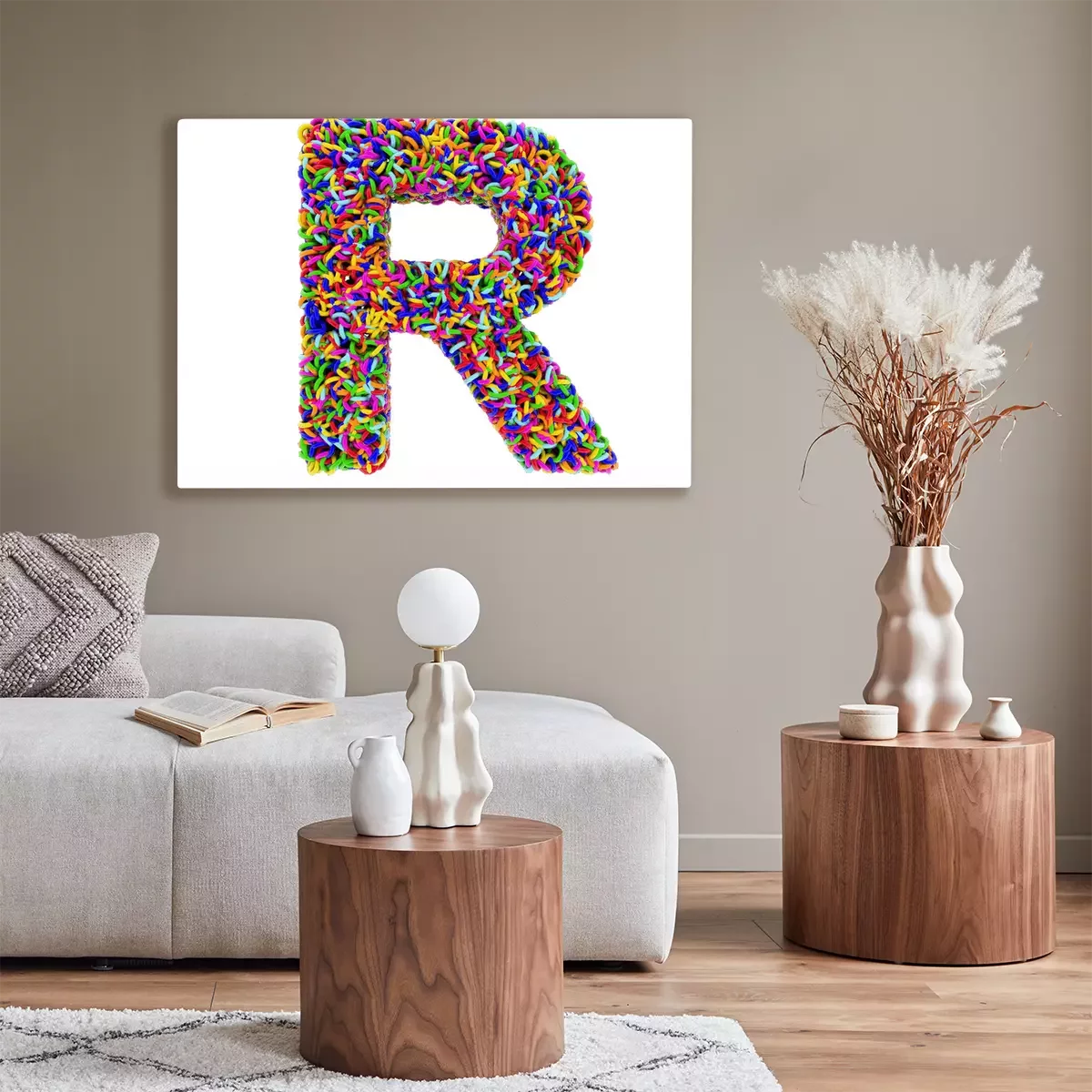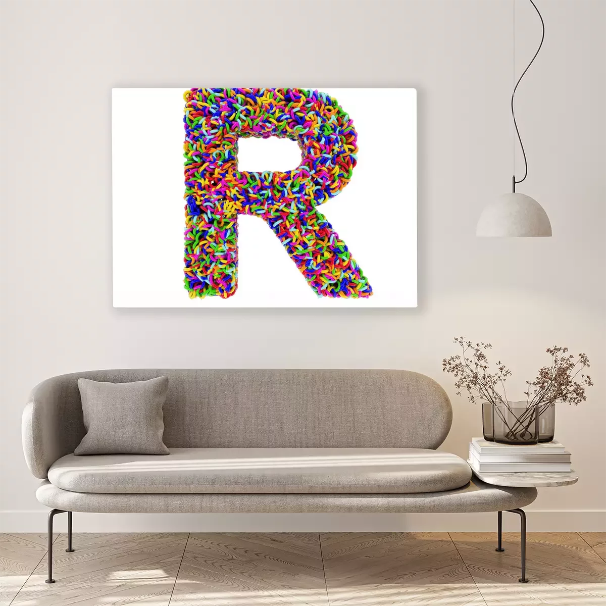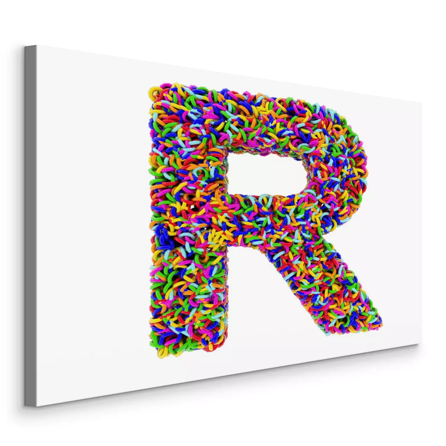 Canvas Letter R bestaat uit multi-gekleurde ringen