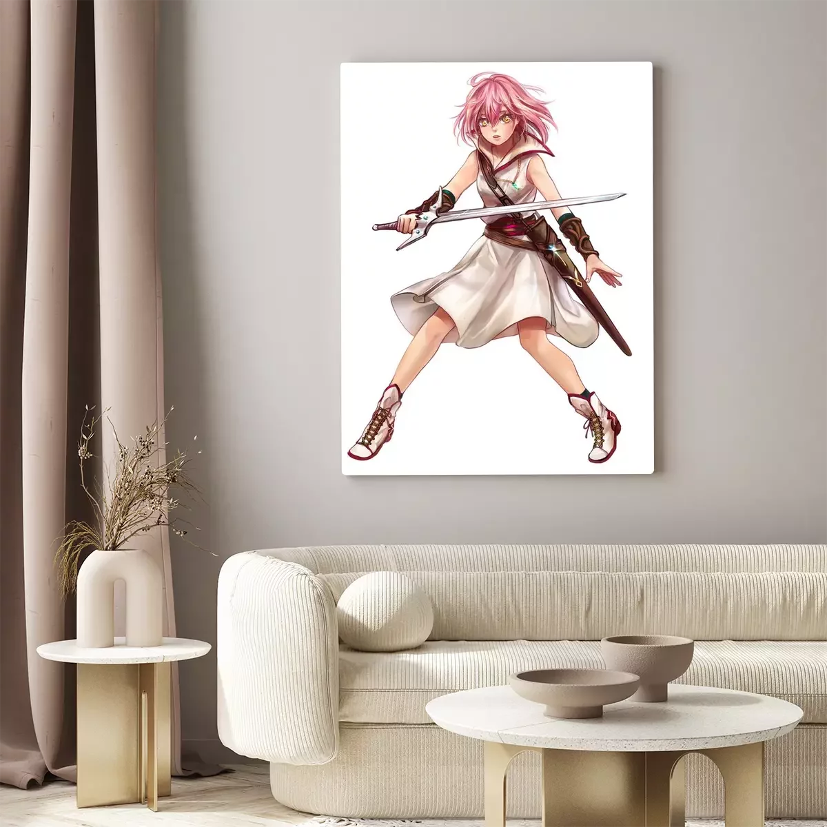 Canvas Leuk origineel karakterontwerp van strijder van het fantasie de vrouwelijke meisje of swordswoman magische schermerkrijger genoemd Lenaria in Japanse manga-illustratiestijl met geïsoleerde witte achte