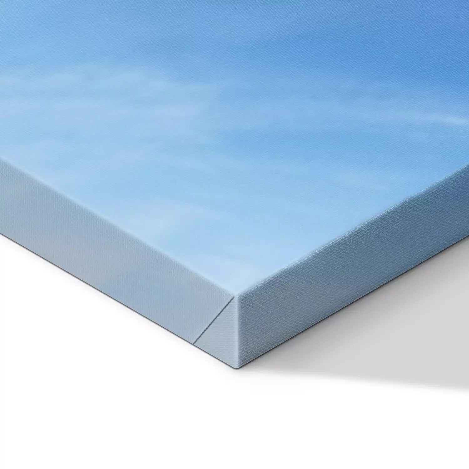 De print wordt aangebracht op hoogwaardig canvas dat op een schildersweefgetouw (spieraam) wordt gespannen. Omdat de print de zijranden bedekt, hoeft het ontwerp niet met een extra kader te worden omlijst. Wij raden ook composities aan die uit meerdere foto's bestaan en zo een coherente compositie vormen.