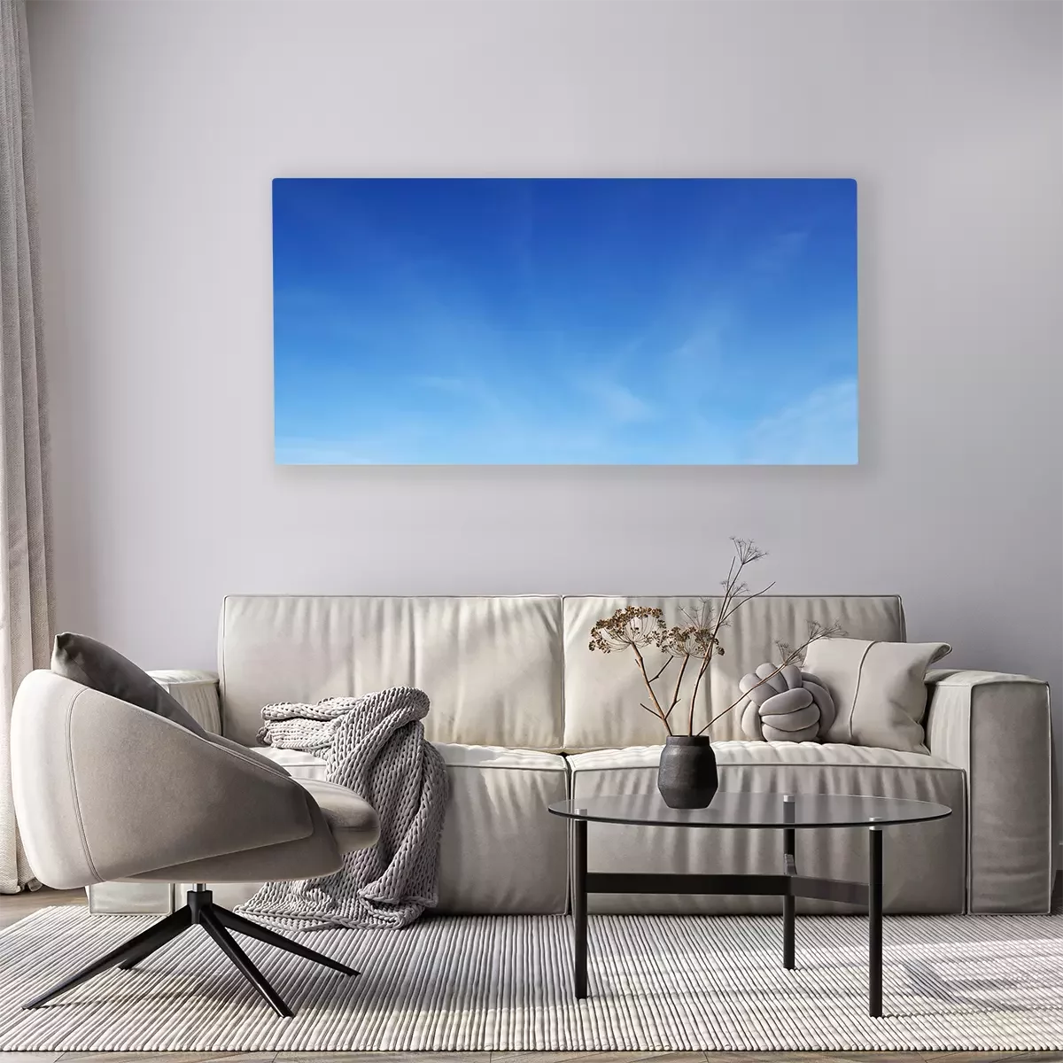 Canvas Levendige kleuren panoramische hemel met wolken op een zonnige dag. Mooie cirruswolk.