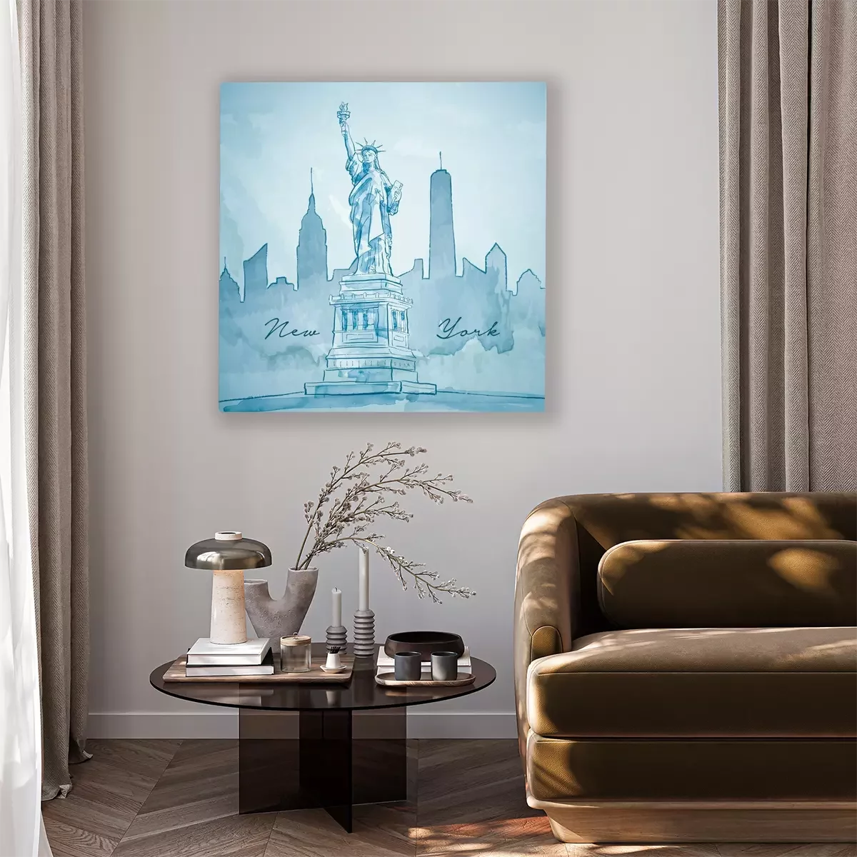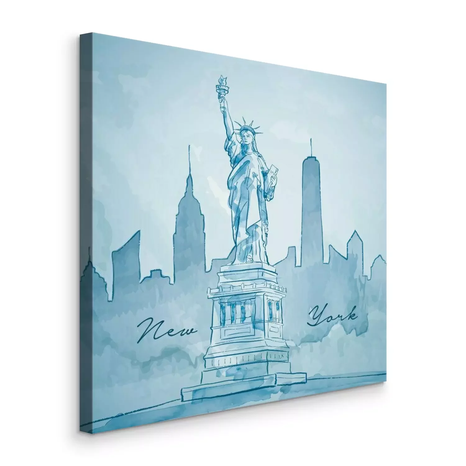Canvas: Liberty standbeeld met New York gebouw stadssilhouet