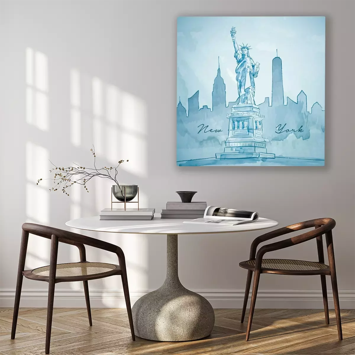 Canvas Liberty standbeeld met New York gebouw stadssilhouet