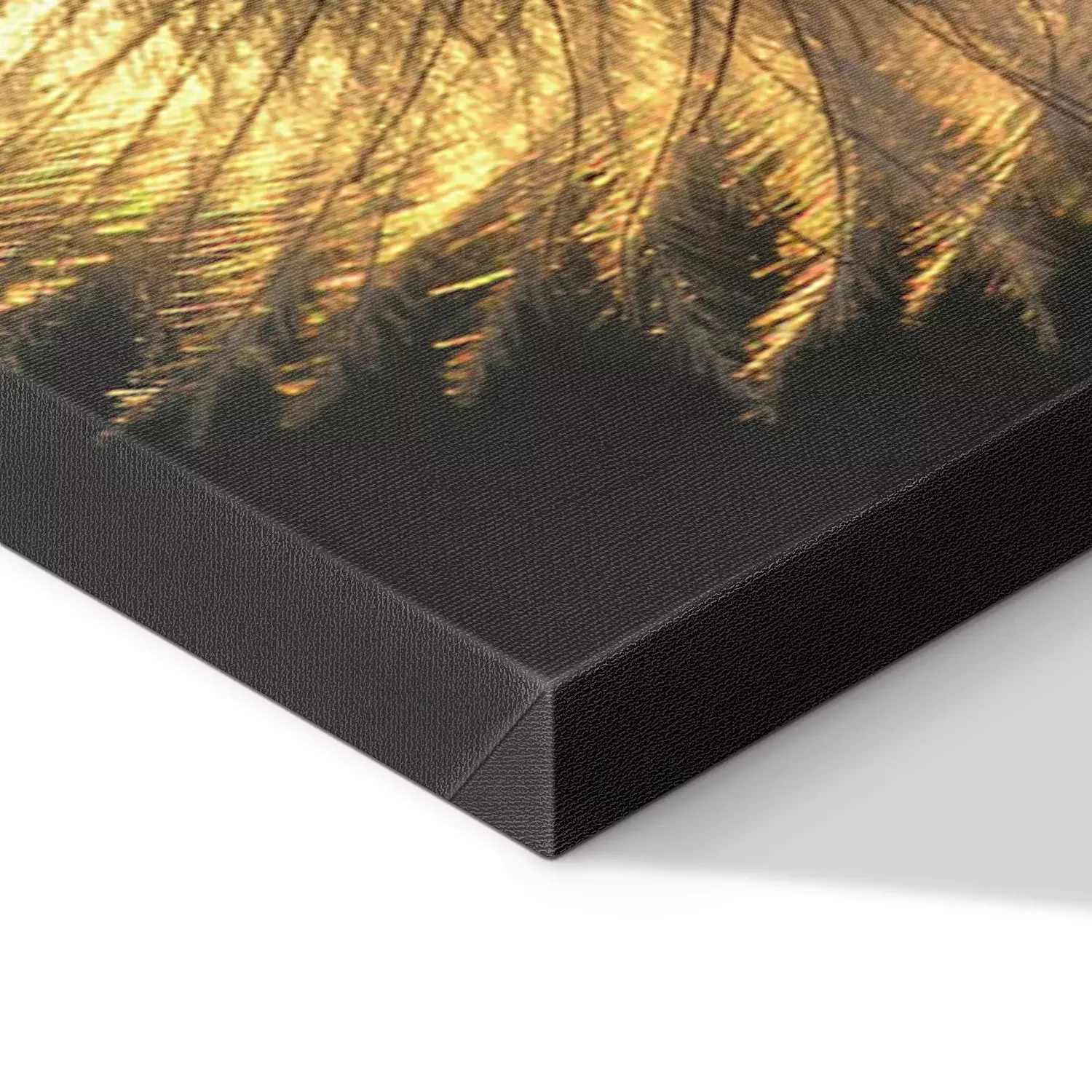 De print wordt aangebracht op hoogwaardig canvas dat op een schildersweefgetouw (spieraam) wordt gespannen. Omdat de print de zijranden bedekt, hoeft het ontwerp niet met een extra kader te worden omlijst. Wij raden ook composities aan die uit meerdere foto's bestaan en zo een coherente compositie vormen.