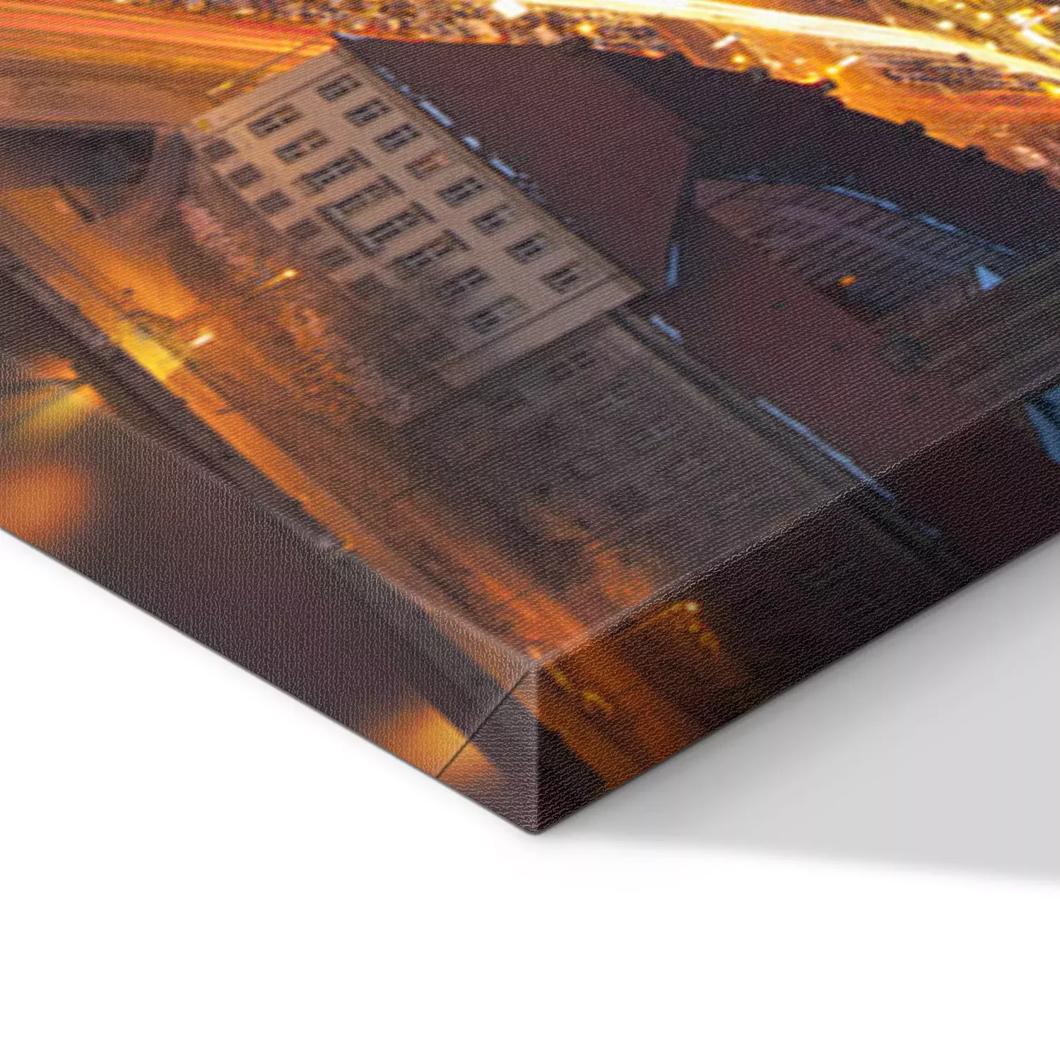 De print wordt aangebracht op hoogwaardig canvas dat op een schildersweefgetouw (spieraam) wordt gespannen. Omdat de print de zijranden bedekt, hoeft het ontwerp niet met een extra kader te worden omlijst. Wij raden ook composities aan die uit meerdere foto's bestaan en zo een coherente compositie vormen.