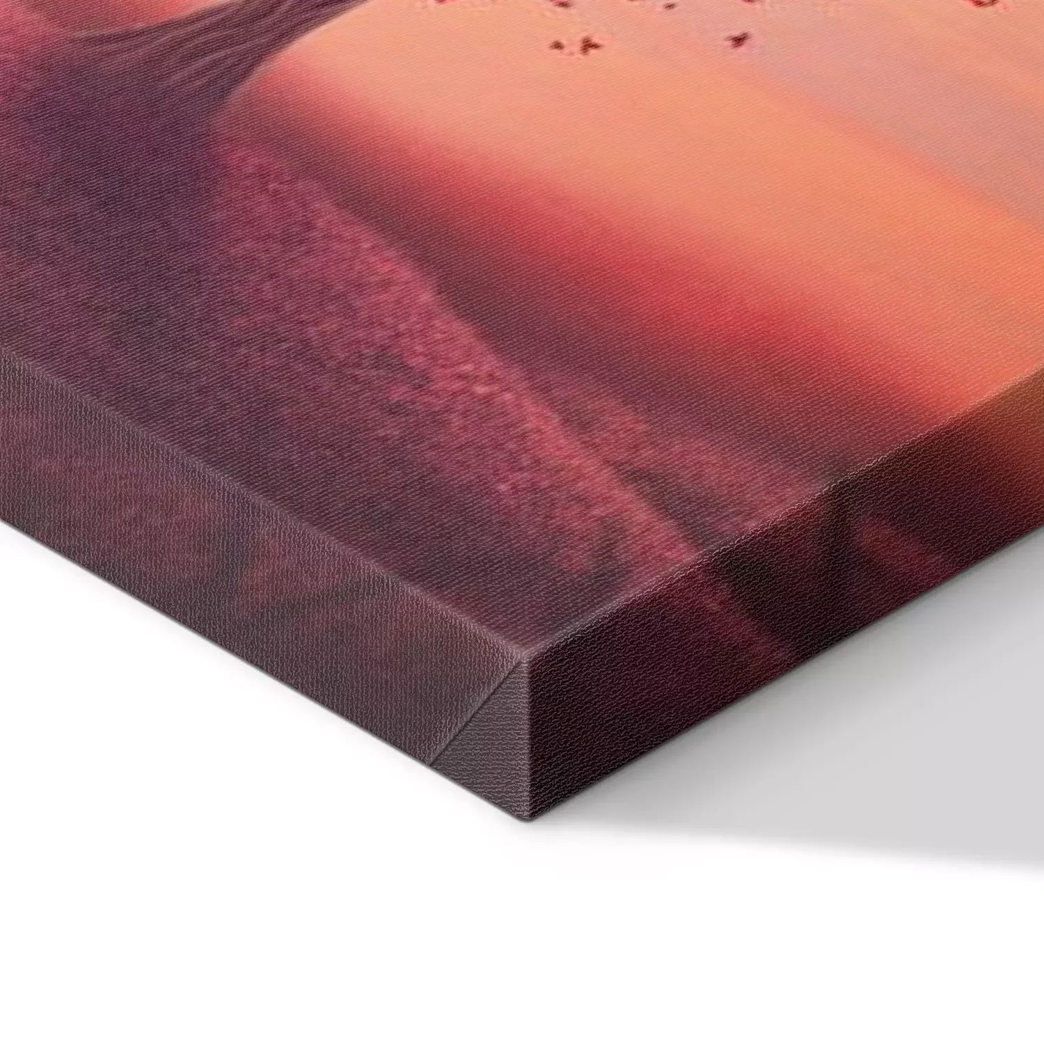 De print wordt aangebracht op hoogwaardig canvas dat op een schildersweefgetouw (spieraam) wordt gespannen. Omdat de print de zijranden bedekt, hoeft het ontwerp niet met een extra kader te worden omlijst. Wij raden ook composities aan die uit meerdere foto's bestaan en zo een coherente compositie vormen.