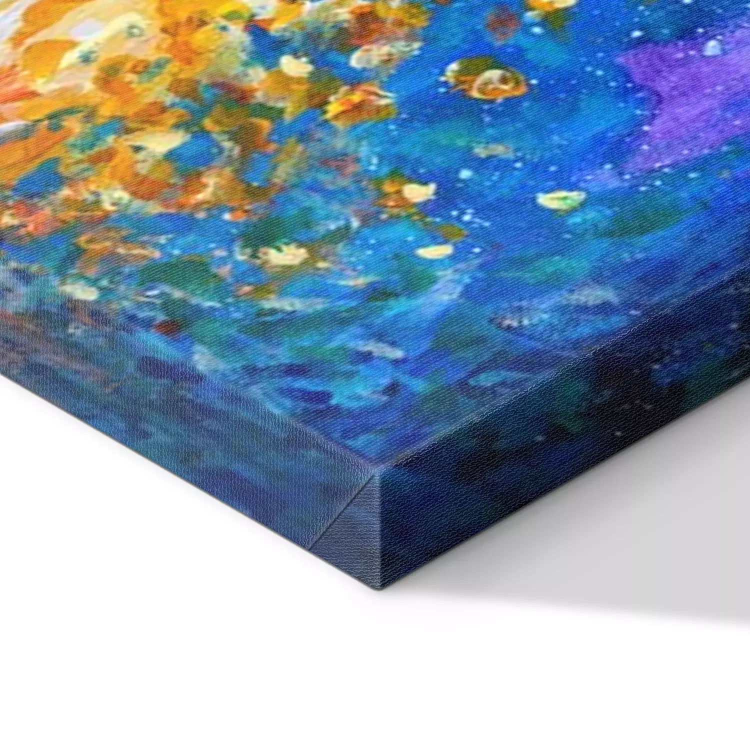 De print wordt aangebracht op hoogwaardig canvas dat op een schildersweefgetouw (spieraam) wordt gespannen. Omdat de print de zijranden bedekt, hoeft het ontwerp niet met een extra kader te worden omlijst. Wij raden ook composities aan die uit meerdere foto's bestaan en zo een coherente compositie vormen.