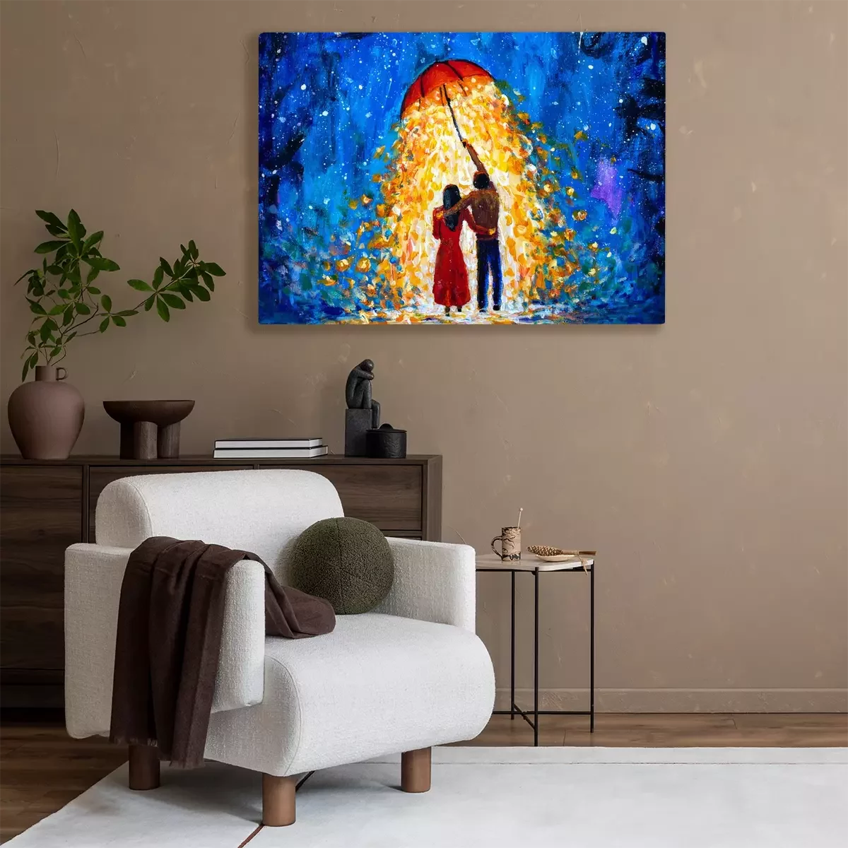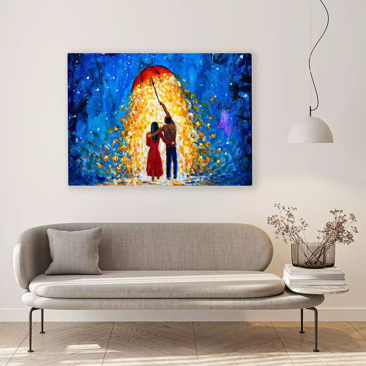 Canvas Liefhebbers en een rode paraplu