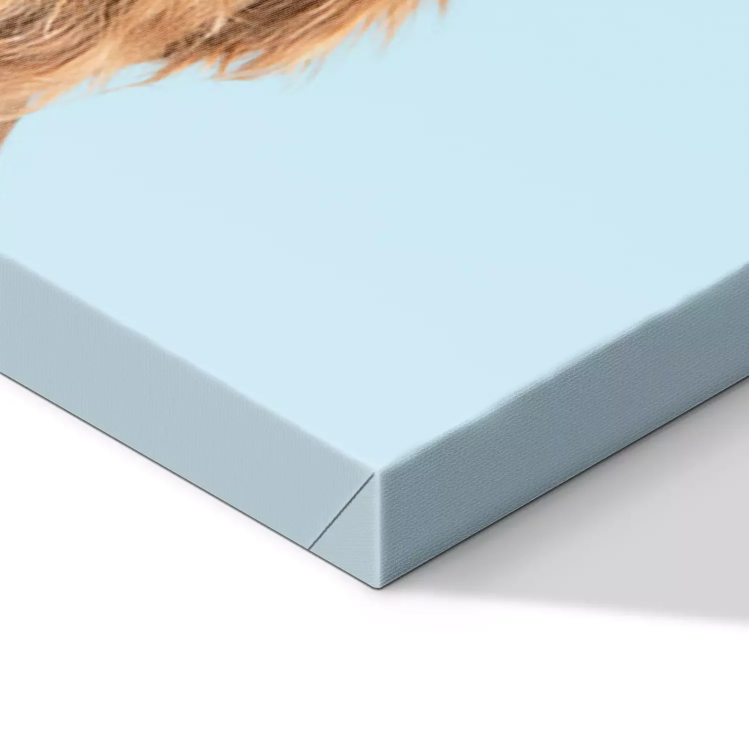 De print wordt aangebracht op hoogwaardig canvas dat op een schildersweefgetouw (spieraam) wordt gespannen. Omdat de print de zijranden bedekt, hoeft het ontwerp niet met een extra kader te worden omlijst. Wij raden ook composities aan die uit meerdere foto's bestaan en zo een coherente compositie vormen.
