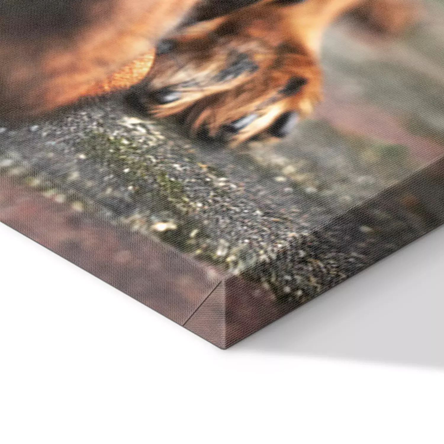 De print wordt aangebracht op hoogwaardig canvas dat op een schildersweefgetouw (spieraam) wordt gespannen. Omdat de print de zijranden bedekt, hoeft het ontwerp niet met een extra kader te worden omlijst. Wij raden ook composities aan die uit meerdere foto's bestaan en zo een coherente compositie vormen.