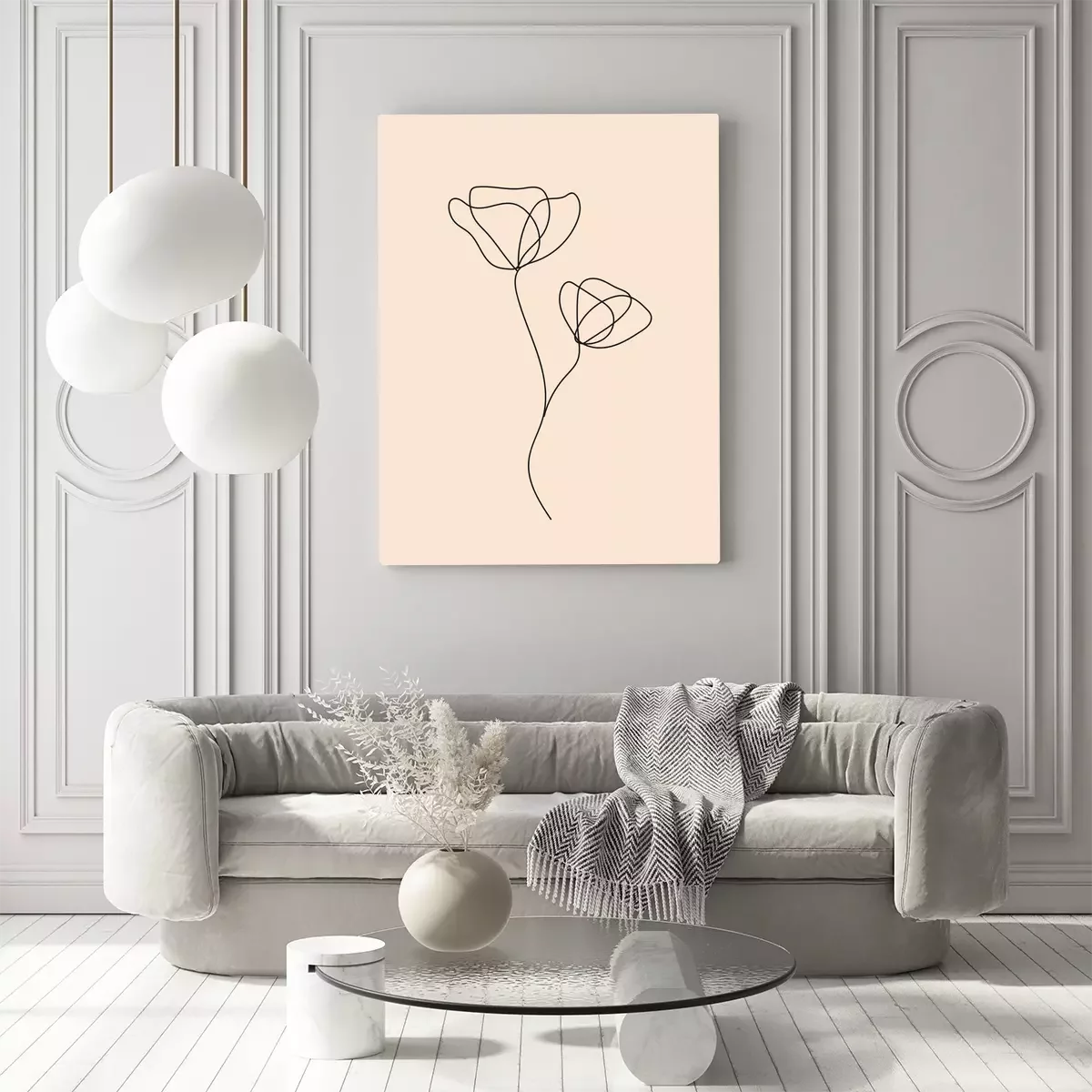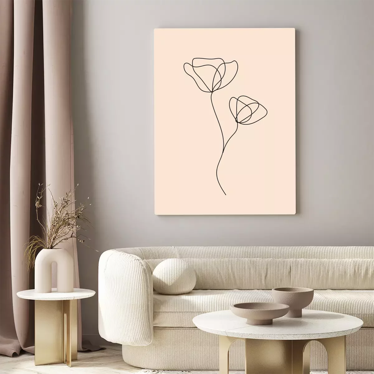 Lineaire tekening van twee bloemen op een roze achtergrond