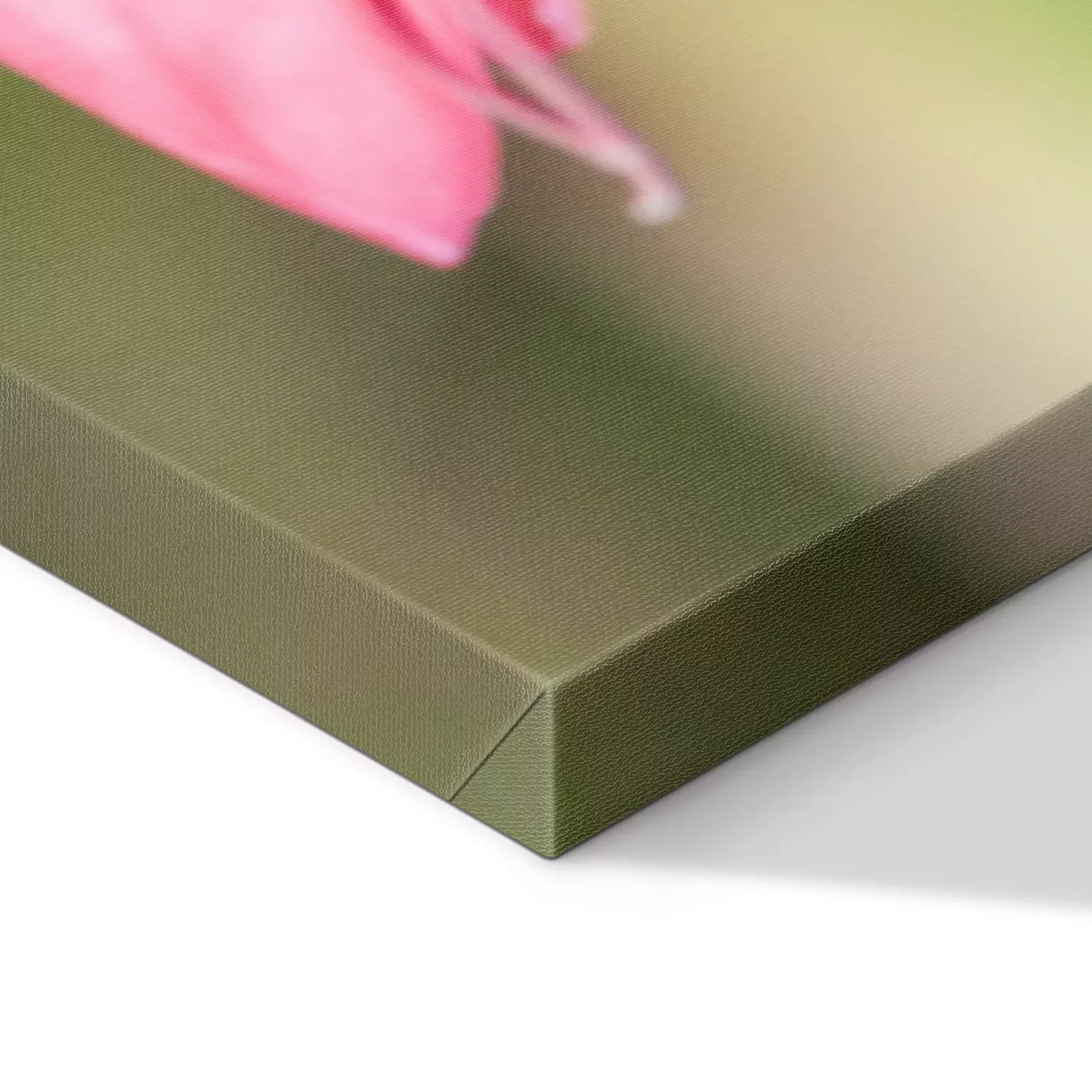 De print wordt aangebracht op hoogwaardig canvas dat op een schildersweefgetouw (spieraam) wordt gespannen. Omdat de print de zijranden bedekt, hoeft het ontwerp niet met een extra kader te worden omlijst. Wij raden ook composities aan die uit meerdere foto's bestaan en zo een coherente compositie vormen.