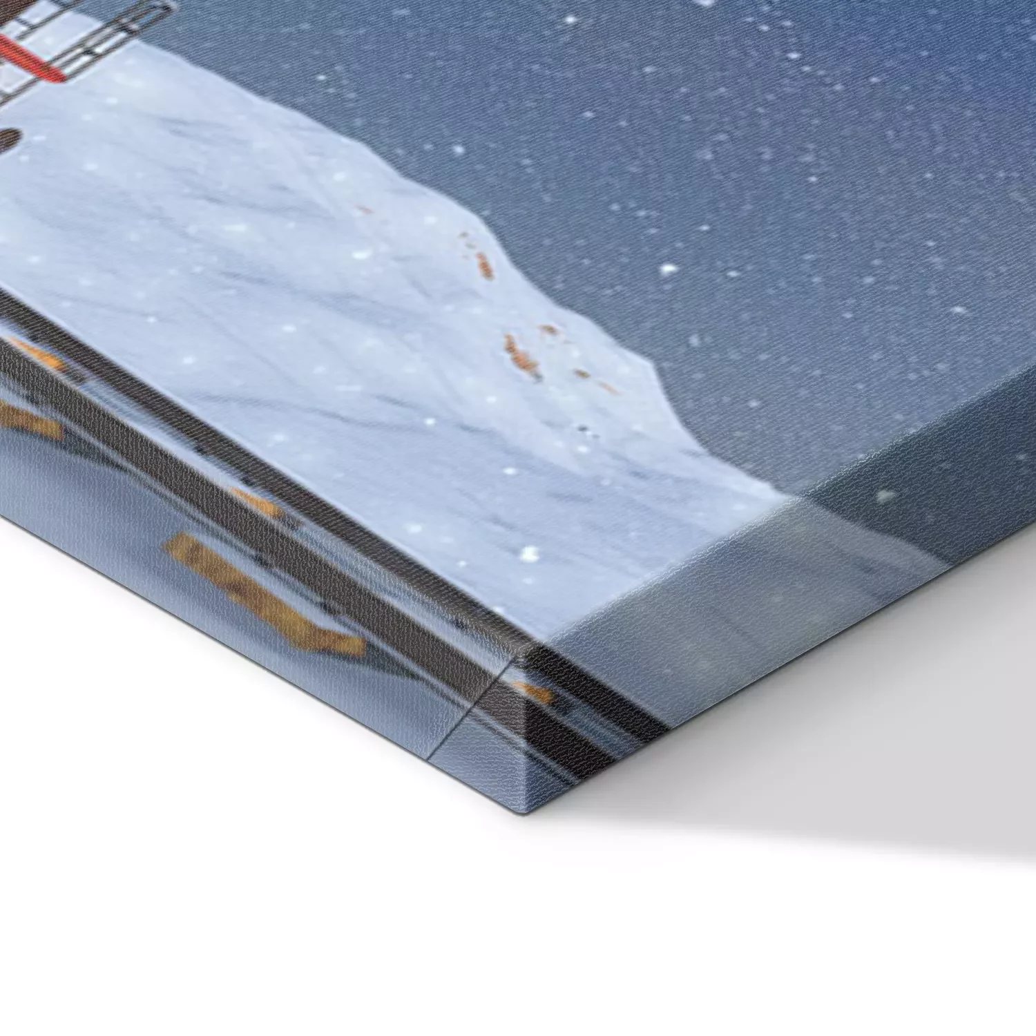 De print wordt aangebracht op hoogwaardig canvas dat op een schildersweefgetouw (spieraam) wordt gespannen. Omdat de print de zijranden bedekt, hoeft het ontwerp niet met een extra kader te worden omlijst. Wij raden ook composities aan die uit meerdere foto's bestaan en zo een coherente compositie vormen.