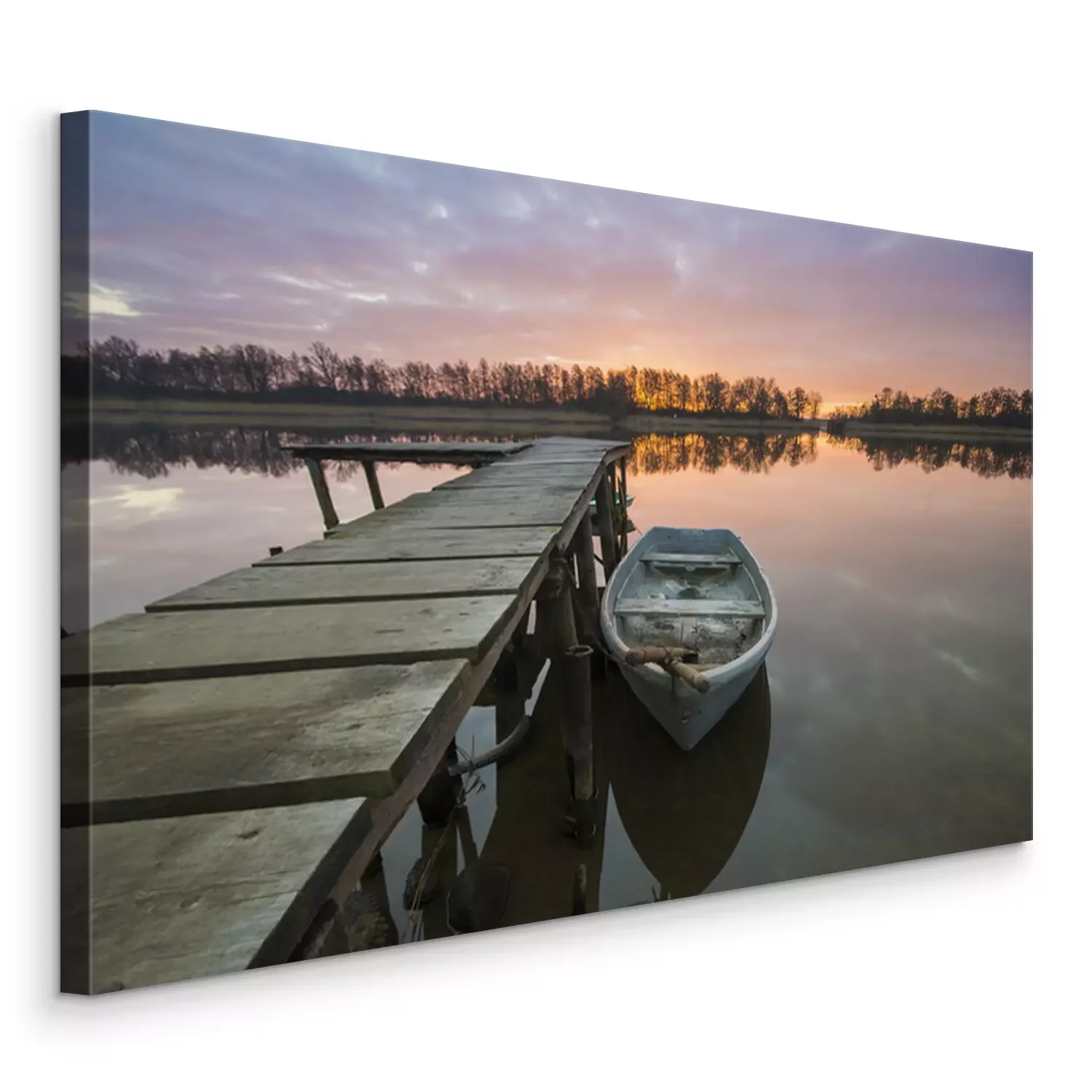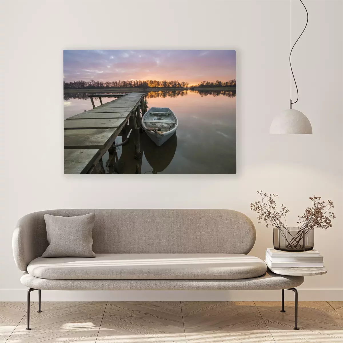 Canvas Łódź  zacumowane przy pomoście nad jeziorem