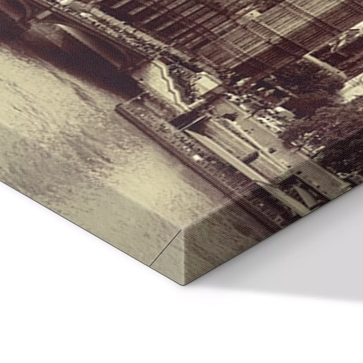 De print wordt aangebracht op hoogwaardig canvas dat op een schildersweefgetouw (spieraam) wordt gespannen. Omdat de print de zijranden bedekt, hoeft het ontwerp niet met een extra kader te worden omlijst. Wij raden ook composities aan die uit meerdere foto's bestaan en zo een coherente compositie vormen.