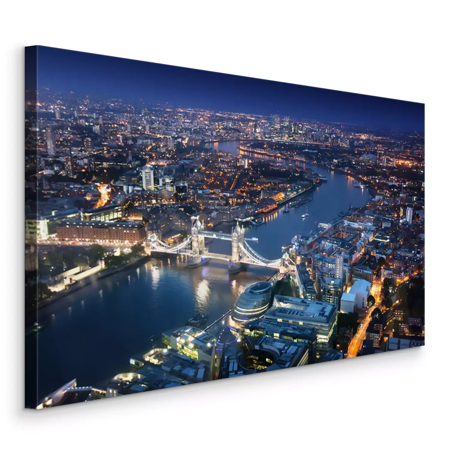 Canvas Londen bij nacht met stedelijke architectuur en de Tower Bridge