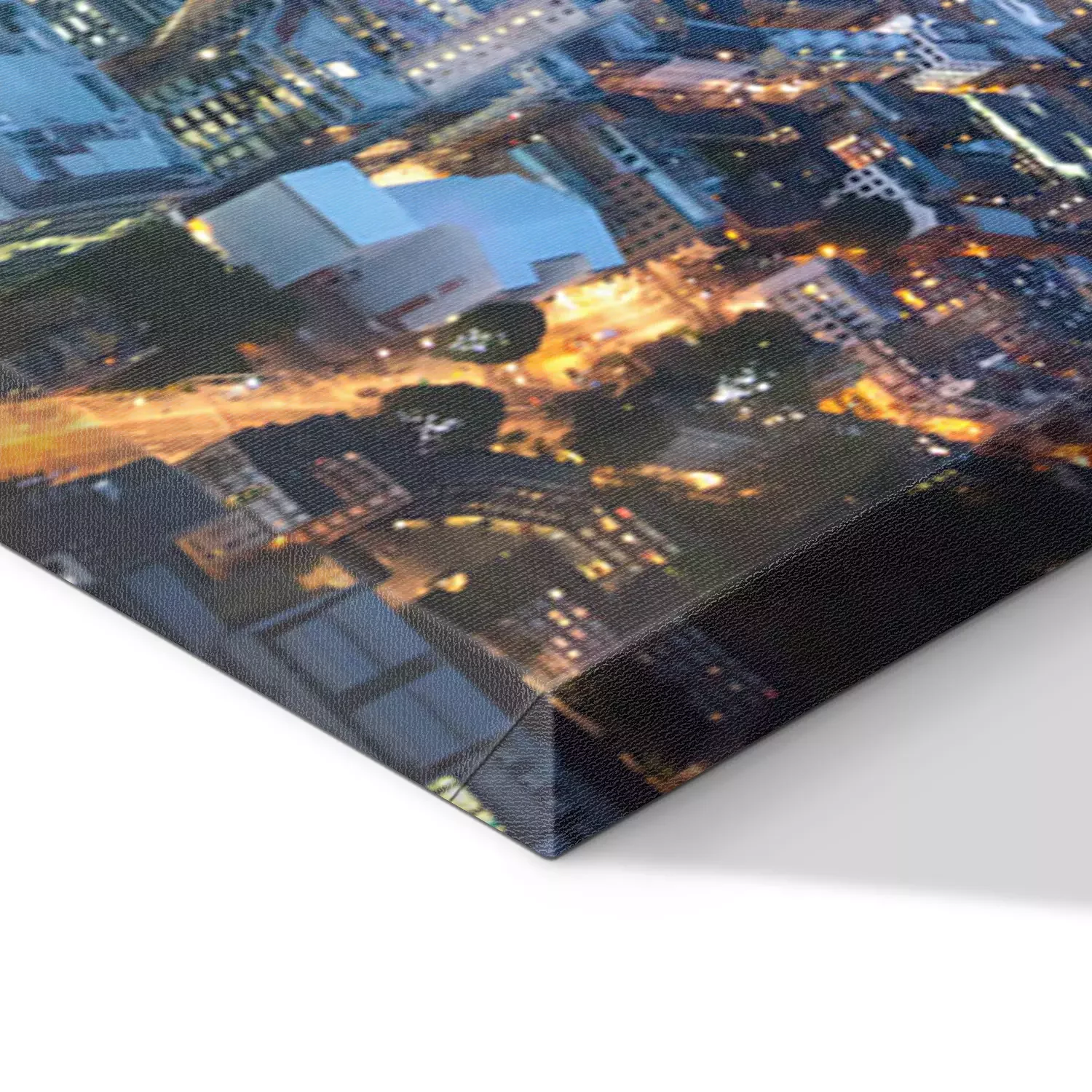 De print wordt aangebracht op hoogwaardig canvas dat op een schildersweefgetouw (spieraam) wordt gespannen. Omdat de print de zijranden bedekt, hoeft het ontwerp niet met een extra kader te worden omlijst. Wij raden ook composities aan die uit meerdere foto's bestaan en zo een coherente compositie vormen.