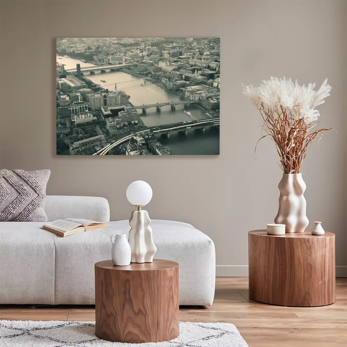 De print wordt aangebracht op hoogwaardig canvas dat op een schildersweefgetouw (spieraam) wordt gespannen. Omdat de print de zijranden bedekt, hoeft het ontwerp niet met een extra kader te worden omlijst. Wij raden ook composities aan die uit meerdere foto's bestaan en zo een coherente compositie vormen.