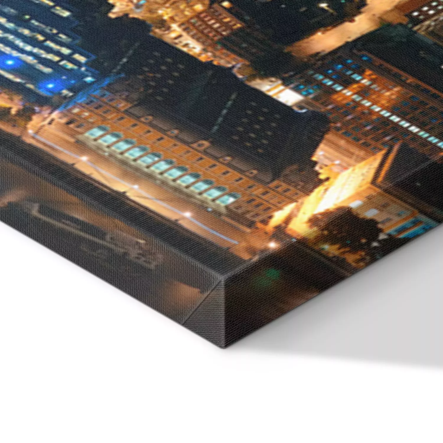 De print wordt aangebracht op hoogwaardig canvas dat op een schildersweefgetouw (spieraam) wordt gespannen. Omdat de print de zijranden bedekt, hoeft het ontwerp niet met een extra kader te worden omlijst. Wij raden ook composities aan die uit meerdere foto's bestaan en zo een coherente compositie vormen.