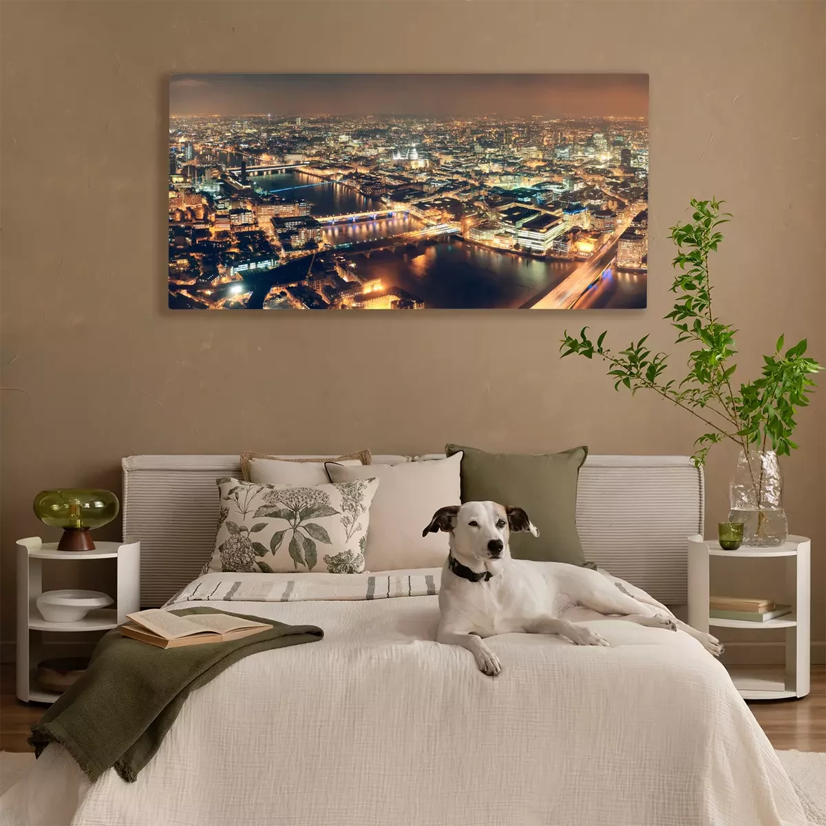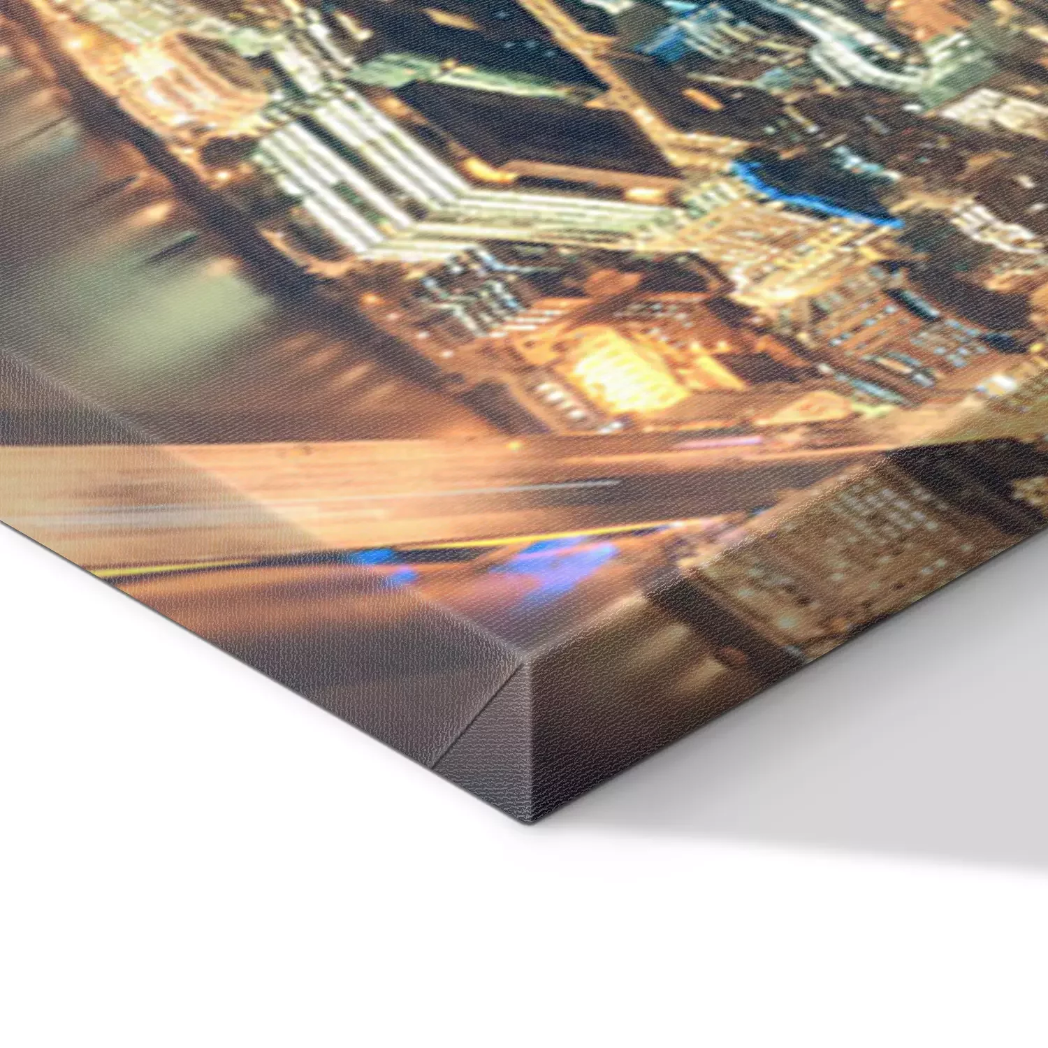 De print wordt aangebracht op hoogwaardig canvas dat op een schildersweefgetouw (spieraam) wordt gespannen. Omdat de print de zijranden bedekt, hoeft het ontwerp niet met een extra kader te worden omlijst. Wij raden ook composities aan die uit meerdere foto's bestaan en zo een coherente compositie vormen.