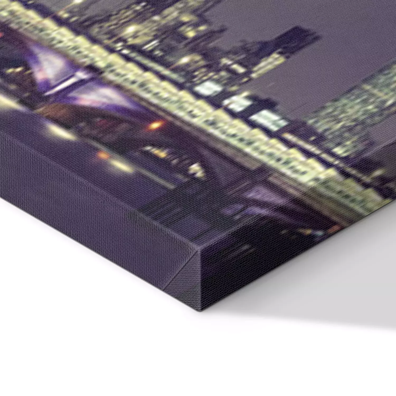 De print wordt aangebracht op hoogwaardig canvas dat op een schildersweefgetouw (spieraam) wordt gespannen. Omdat de print de zijranden bedekt, hoeft het ontwerp niet met een extra kader te worden omlijst. Wij raden ook composities aan die uit meerdere foto's bestaan en zo een coherente compositie vormen.